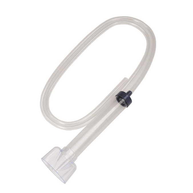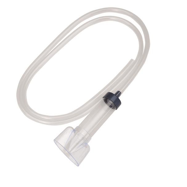 Det transparente røret gir full oversikt over rengjøringsprosessen og lar brukeren se når vann og avfall suges opp. Slangen er lang nok til å nå ned i spann eller bøtte plassert under akvarienivået.
