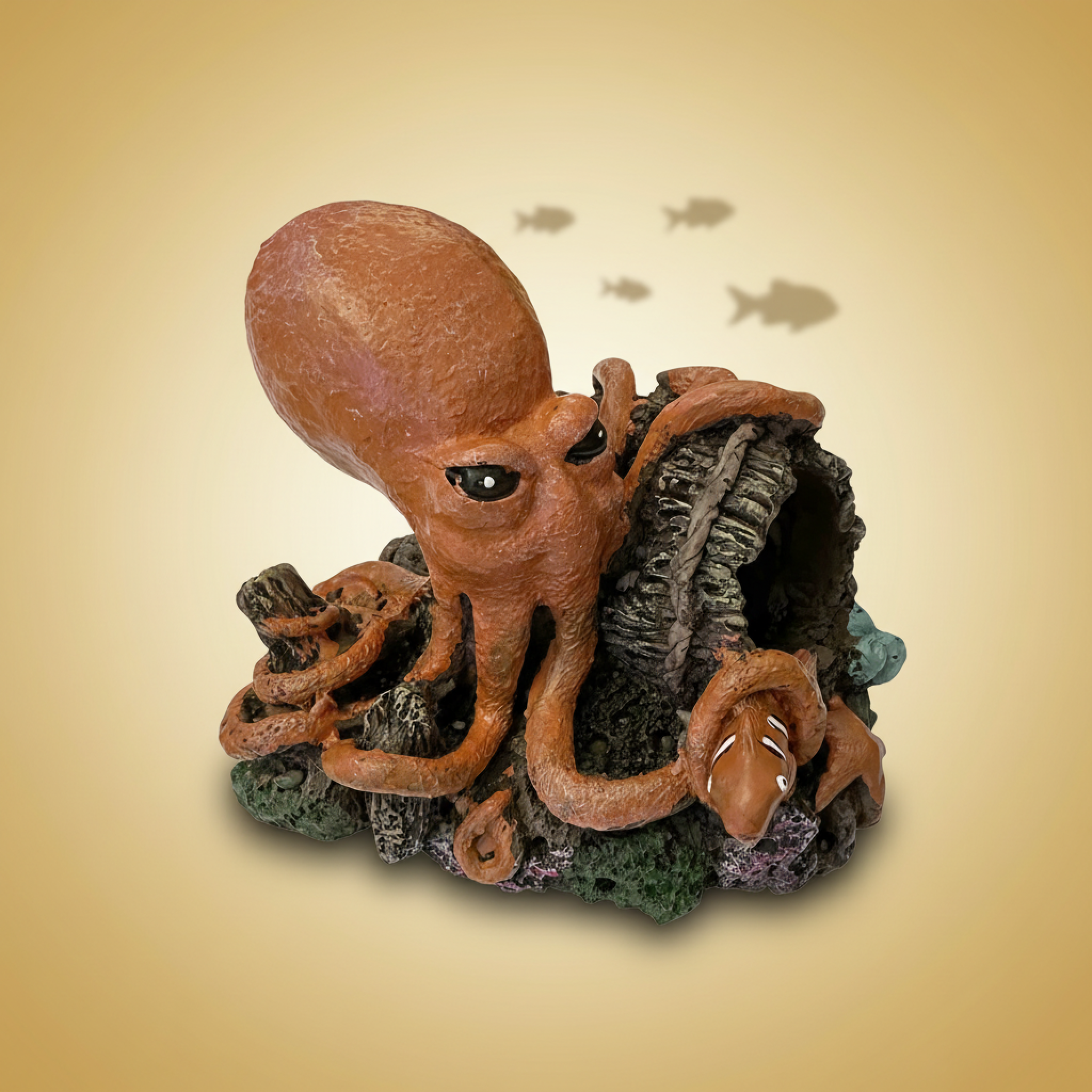4FISH Blekksprut med Tønne – Leken Akvariedekorasjon