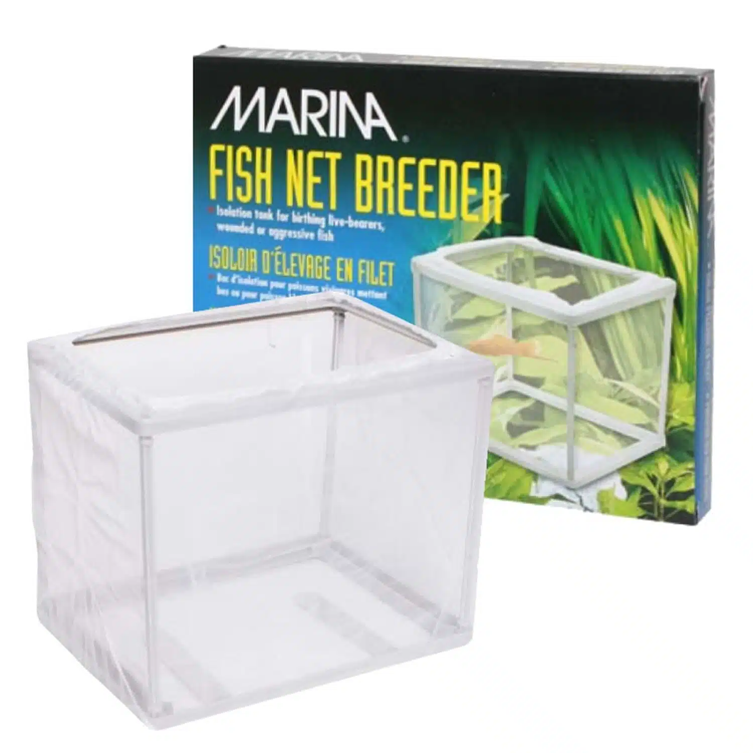 Marina Fish Net Breeder gir et ideelt isolasjonskammer for syk eller svak fisk. Det finmaskede nettet gir fri flyt av vann for å holde oksygennivået oppe. Den kan også brukes som et flytende sikkerhetskammer for gravide levendebærere.