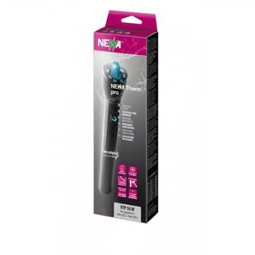 Newa Therm Pro, uknuselig varmekolbe i aluminium og Polymer-plast. Varmekolben har elektronisk kontroll og 2 farget diode for enkel visuell sjekk av varmekolben om den varmer eller akvariet har tilfredsstillende temperatur.