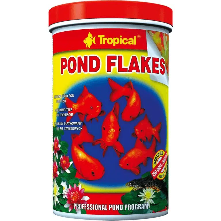 Tropical pond flakes 1000ml flager mat til små damfisk. Flagefôr med flere ingredienser til hverdagsfôring av små og unge damfisk. Et bredt utvalg av nøye utvalgte ingredienser garanterer sunt kosthold, som fullt ut oppfyller ernæringskravene til fisk. Hvis det brukes regelmessig, sørger Pond Flakes for god tilstand, riktig vekst og utvikling. Det anbefales å bruke Pond Flakes i perioden mellom tidlig vår og sen høst når vanntemperaturen ikke faller under 10 ° C og om vinteren for innendørs dammer med liten fisk. Etter hvert som fisken vokser, anbefales det å introdusere andre tropiske matvarer i form av flytende pinner som Koi & Goldfish Basic Sticks, Koi & Goldfish Color Sticks, Koi & Goldfish Vegetable Sticks.
