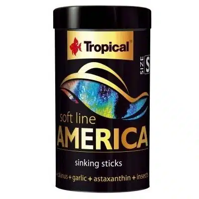 Tropical Soft Line America S er det ideelle fôret for både altetende og kjøttetende fisk fra Nord- og Sør-Amerika. Dette myke fôret i form av synkepinner gir fisken din den ernæringen den trenger for å trives og utvikle vakre farger.