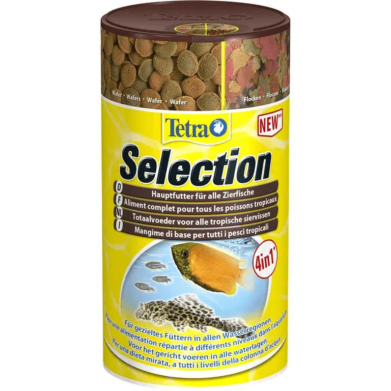 Tetra Selection er for forskjellige stiftmatvarer for fôring av fisk i forskjellige vannområder i akvariet. Tetra Selection -varianter for alle tropiske akvariefisk.