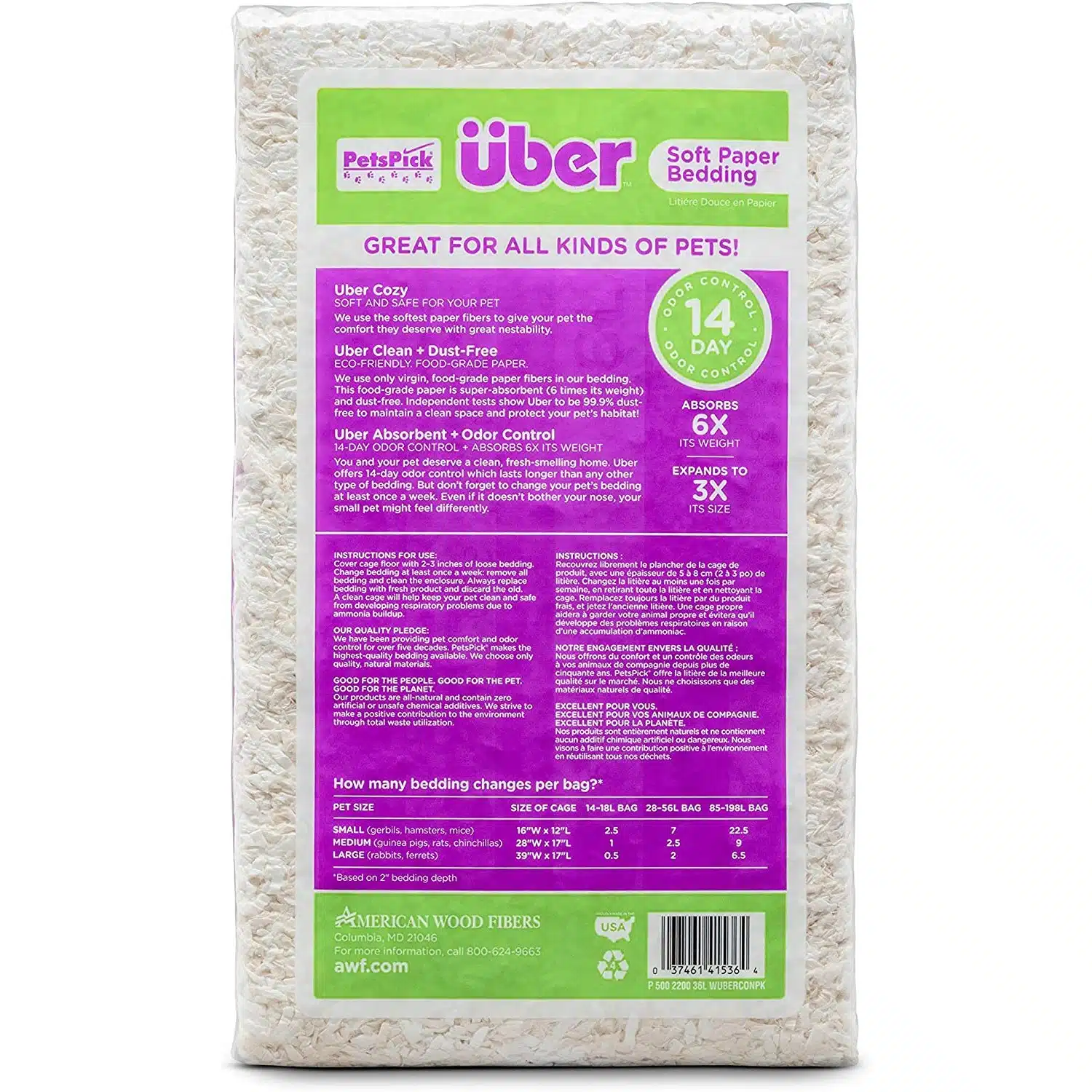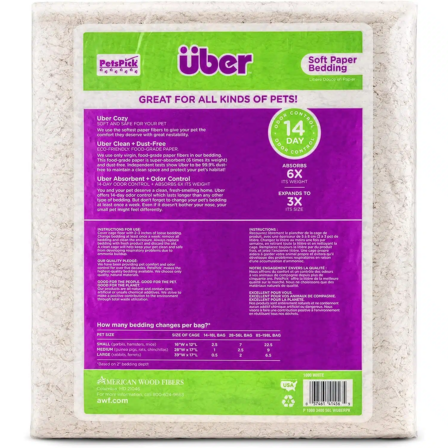 ÜBER Papirstrø Hvit kommer i fire størrelser: 36 liter, 56 liter, 85 liter og 170 liter, slik at du kan velge det som passer best for ditt kjæledyrs behov.