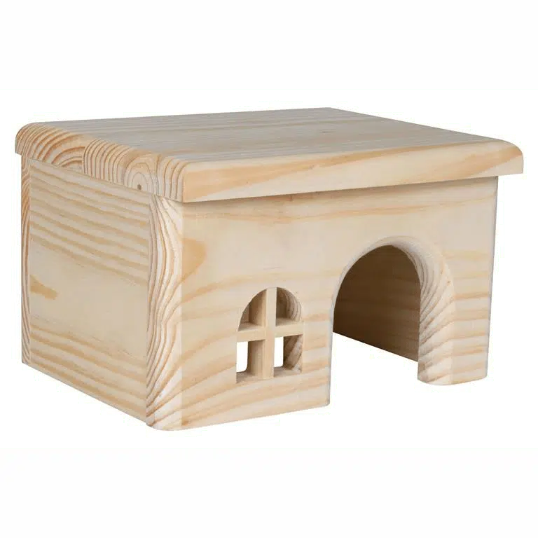Hamsterhuset er spesielt designet uten braketter eller skruer som kan skade dyrene. Den sikre konstruksjonen gjør det til et ideelt skjulested hvor smågnageren kan trekke seg tilbake når den trenger ro og hvile. Dette er avgjørende for dyrets velvære og naturlige behov for privatliv.