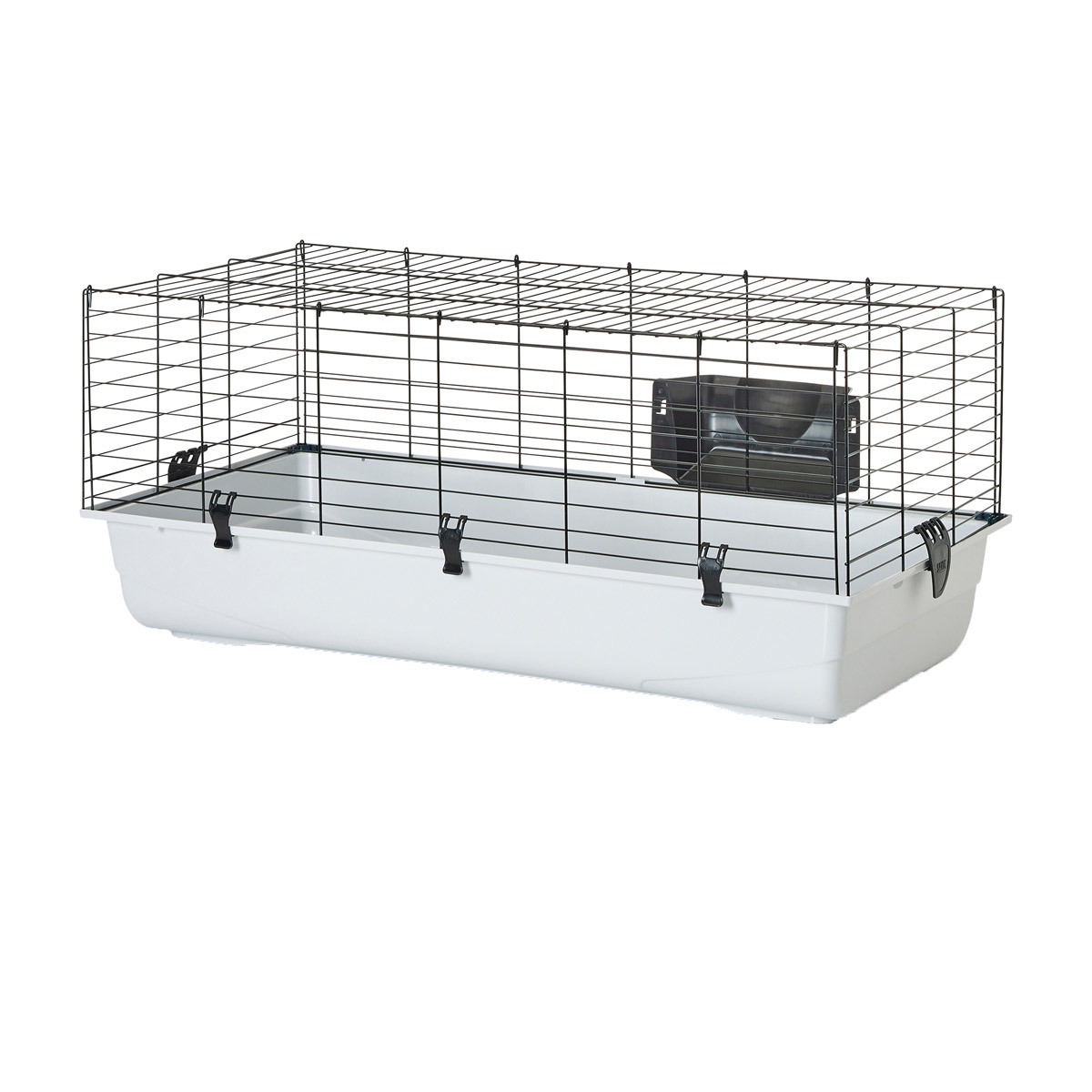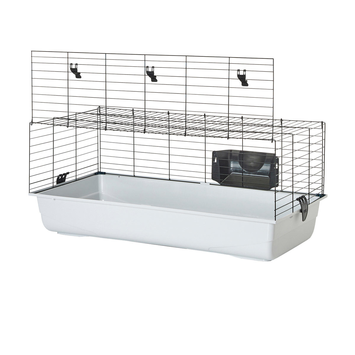 Den store tilgangsluken åpner seg hele veien, noe som gir rask fôring og rengjøring. Snap-fit systemet lar deg fjerne bunnbrettet helt. Ambiente leveres med høystativ.