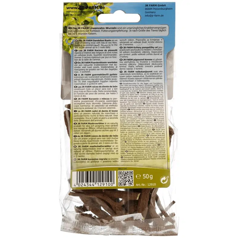 JR FARM Dandelion Roots er et originalt knasende godteri med mye fiber. Fôringsanbefalinger: Avhengig av størrelsen på dyret opptil 3 om dagen. Fôr til alle gnagere og dvergkaniner.