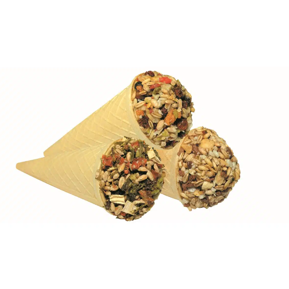 hvetemel, vegetabilsk olje, potetstivelse, hvete, tørket rogn, tørket chokeberry, tørket einer, skallet havre, kokosflak, tørket appelsinskall, gjær, maltodekstrin. Tilsetningsstoffer: sensoriske tilsetningsstoffer: fargestoffer. Teknologiske tilsetningsstoffer: konserveringsmidler