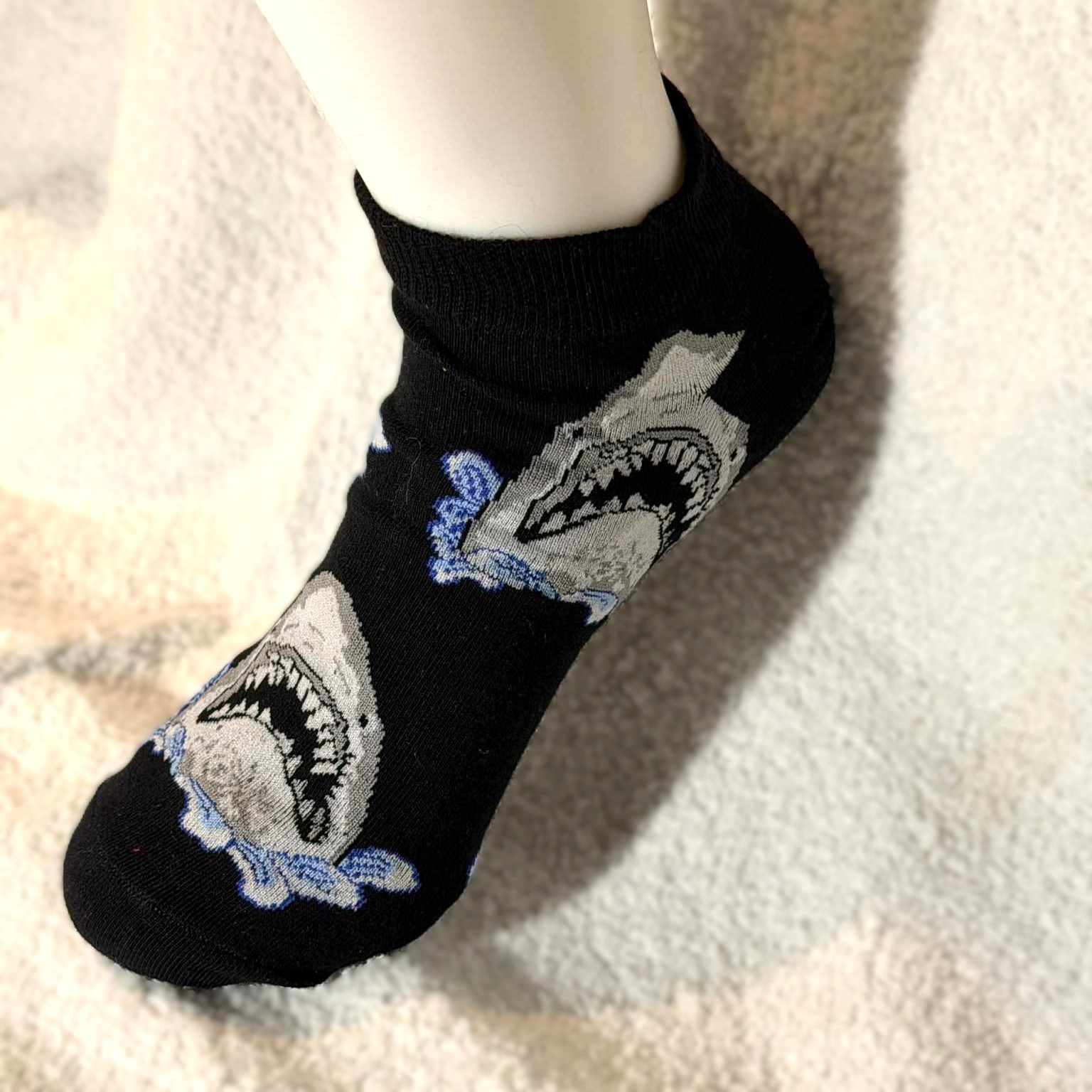 Ankelsokk med hai som viser tenner