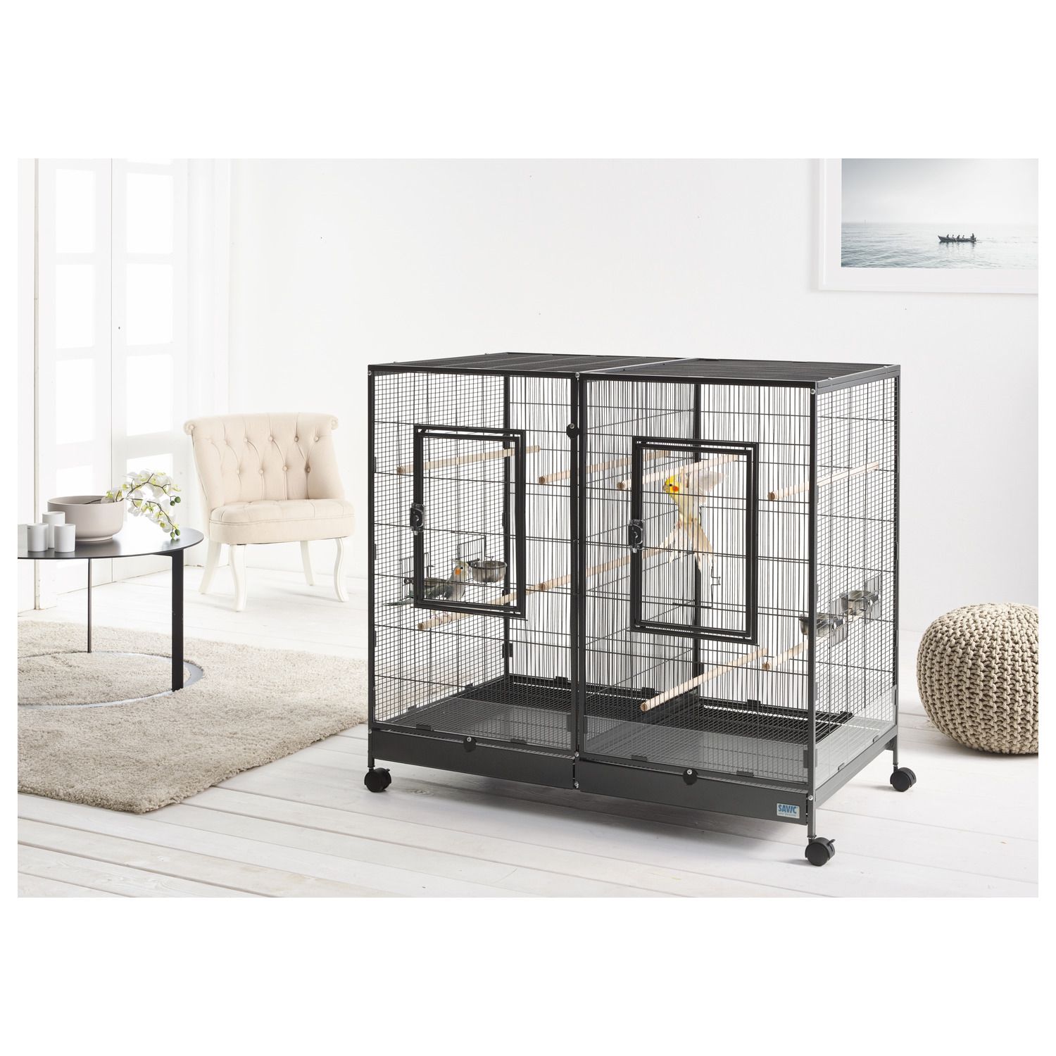 Tasmania 120 fra Savic er et royalt sovested for din(e) fugl(er). Et komfortabelt bur med forskjellige fasiliteter. Forsiden av buret har to store dører. Dørene er også store nok til å lande i buret. Buret leveres også med en praktisk uttrekksskuff slik at det er ekstra enkelt å bytte bursand.