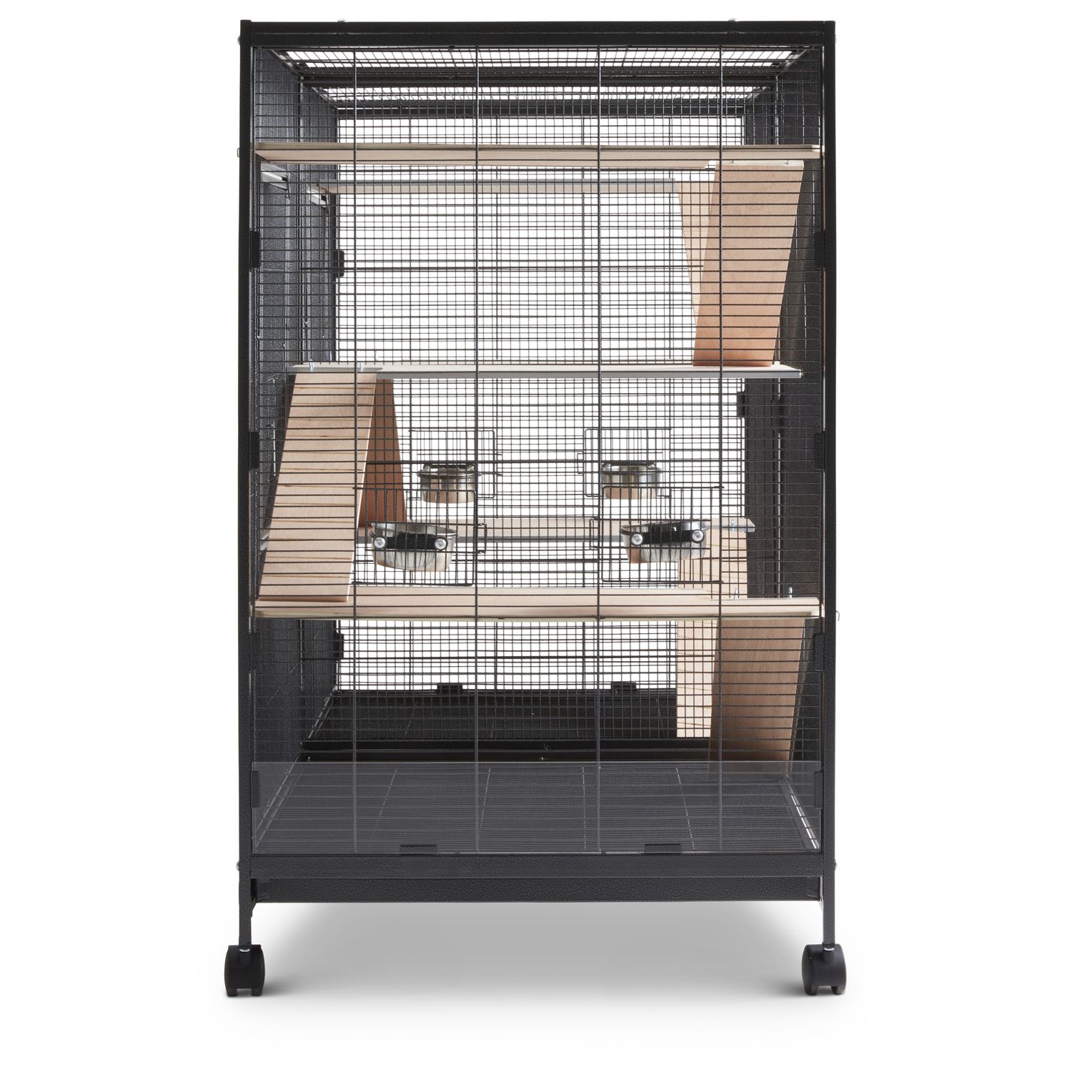 Tasmania 120 kommer med avdelingsgitter. Hvis du har nye fugler eller to fugler som ikke kommer godt overens for øyeblikket, er det mulig å gi dem begge sin egen plass. Buret leveres med fire 360 ​​° dreibare hjul, hvorav to har bremser. Inkludert er også 8 sitteplasser, 4 skåler. Buret kan tilpasses slik at det passer for gnagere som rotter eller chinchillaer.