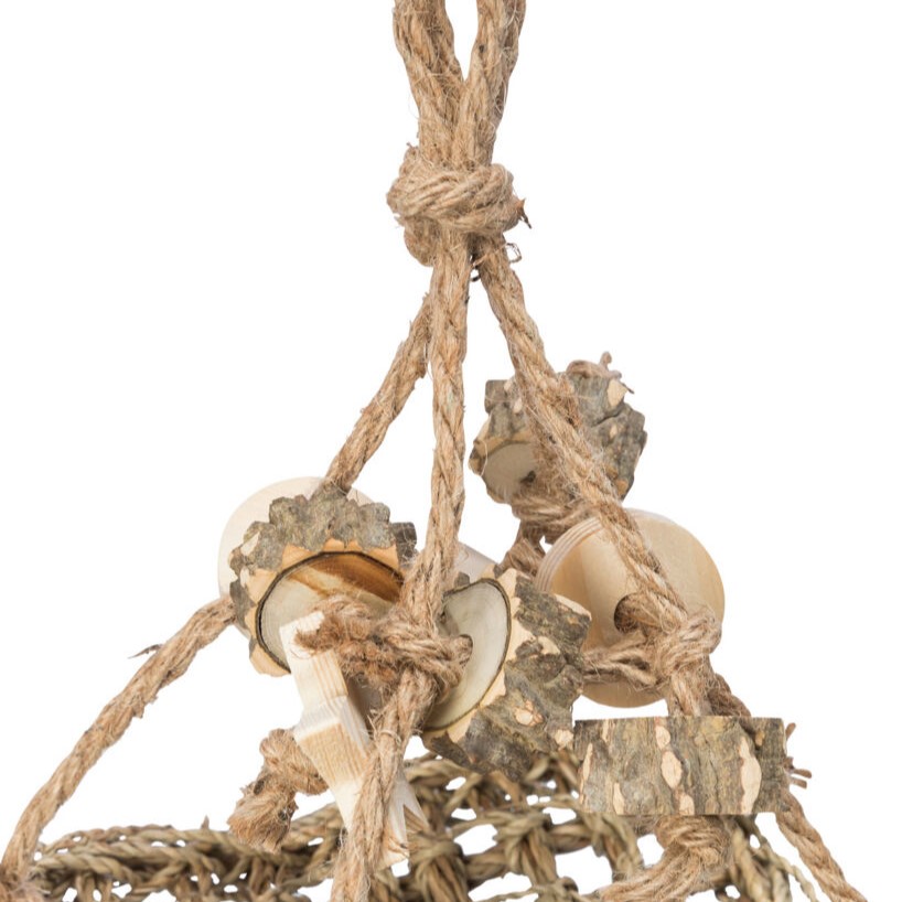 Denne naturlige fugleleken gir dine fjærkledde venner timevis av underholdning og fysisk aktivitet. Laget av miljøvennlig sjøgress og tre, er denne husken perfekt for å holde fugler aktive og engasjerte i sitt miljø.
