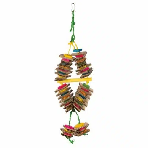 Naturlig fugleleke fra Trixie med papp, tre og sisaltau. Stimulerer fuglens naturlige gnagebehov, gir mental aktivitet og forebygger kjedsomhet i buret. Passer små og mellomstore fugler.