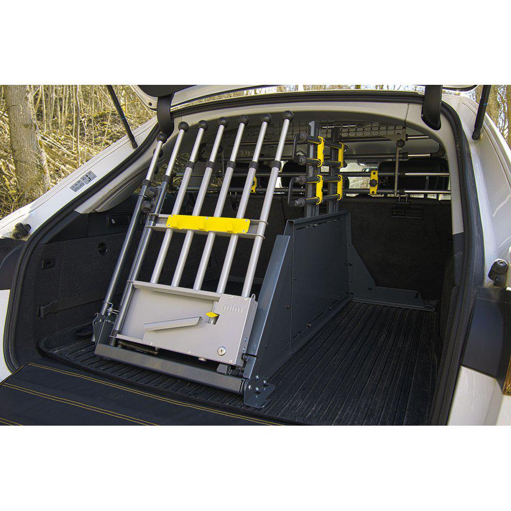 Med MIM Variogate Dobbel Hundegrind G4 gjør du bagasjerommet om til et trygt og komfortabelt sted for hunden din under bilkjøring. Denne doble hundegrinden er en del av det smarte VarioSystem fra svenske Mimsafe, kjent for sin høye kvalitet og sikkerhetsfokus. Variogate er den ideelle løsningen når et standard hundebur ikke passer – eller når du foretrekker å frakte hunden “løst”, men likevel sikkert.