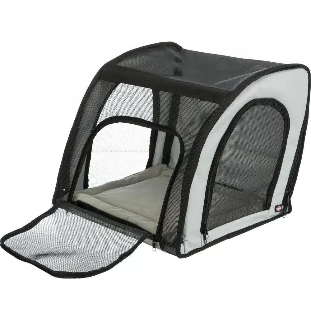 Dette bilsetet har flere funksjoner som gjør det komfortabelt for kjæledyret ditt. Det er utstyrt med en avtakbar pute med skumfylling som gir ekstra komfort, og som kan håndvaskes for enkel rengjøring. Bilsetet har også ulike nettingåpninger som gir god ventilasjon og mulighet for kjæledyret ditt til å se ut, noe som kan redusere stress og engstelse under reisen. Setet kan åpnes både øverst og foran, slik at du enkelt kan plassere og ta ut kjæledyret uten problemer.