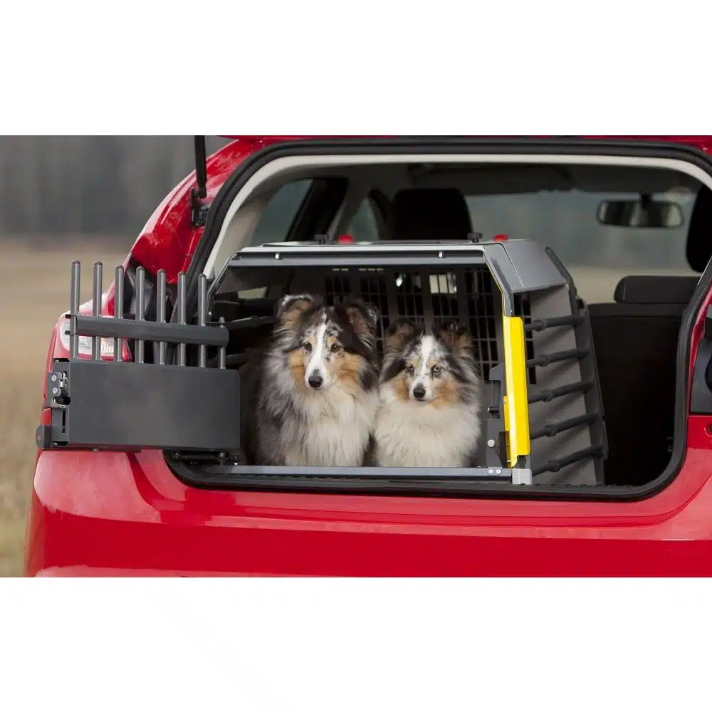 Ved en eventuell påkjørsel bakfra skal buret presses sammen på en kontrollert måte i samsvar med bilens deformasjons-soner. Det innebærer at buret ikke skyver baksetet frem eller splintres, noe som reduserer skaderisiko for både passasjerer og hund. Dersom det skulle oppstå en situasjon som medfører at dørene blokkeres, kan bakveggen (nødutgang) løftes bort ved hjelp av noen enkle håndgrep. Rette sider gir hunden mer plass.