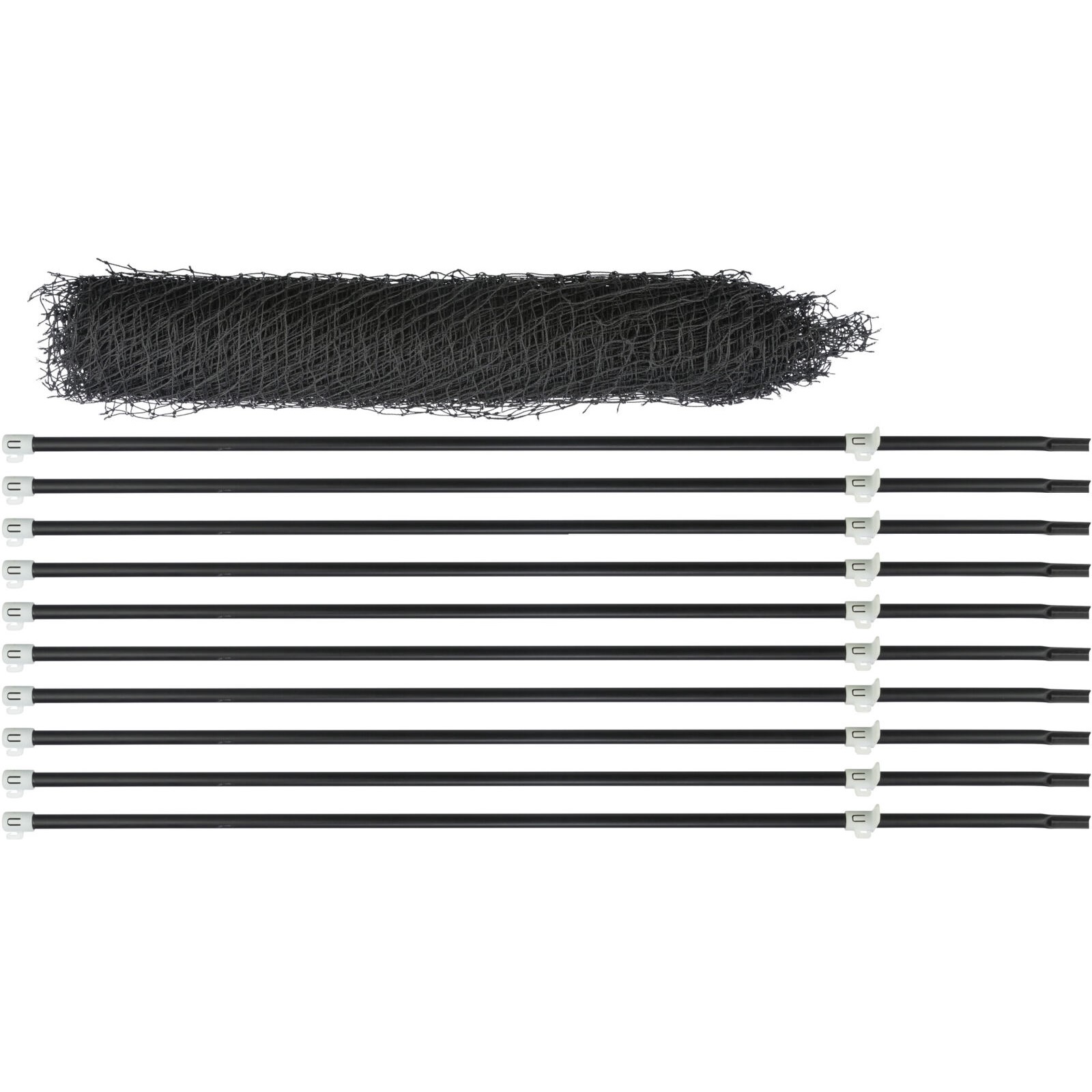 Gjerdet er laget av kvalitetsmaterialer som sikrer langvarig bruk under forskjellige værforhold. Stolpene er laget av plast og jern som er pulverlakkert for ekstra beskyttelse mot rust og slitasje, mens nettet er laget av slitesterk nylon. Dette gjør at gjerdet tåler både sol, regn og vind, og det kan brukes i ulike miljøer uten at kvaliteten svekkes.