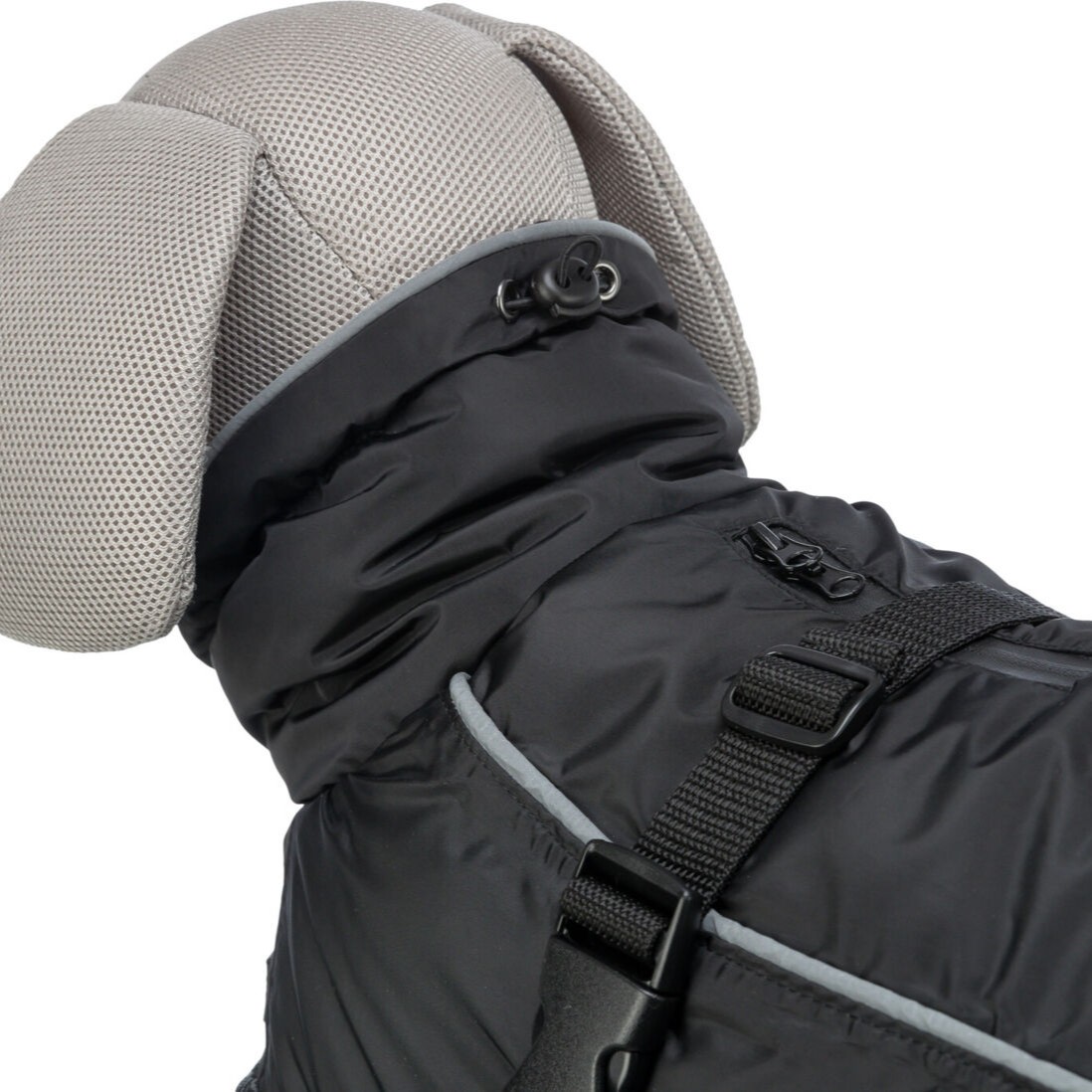 Perfekt tilpasning: Justerbare snøretrekk i nakke- og rygområdet samt justerbare løkker til bakbeina sikrer at jakken sitter perfekt på din hund, uansett bygning.