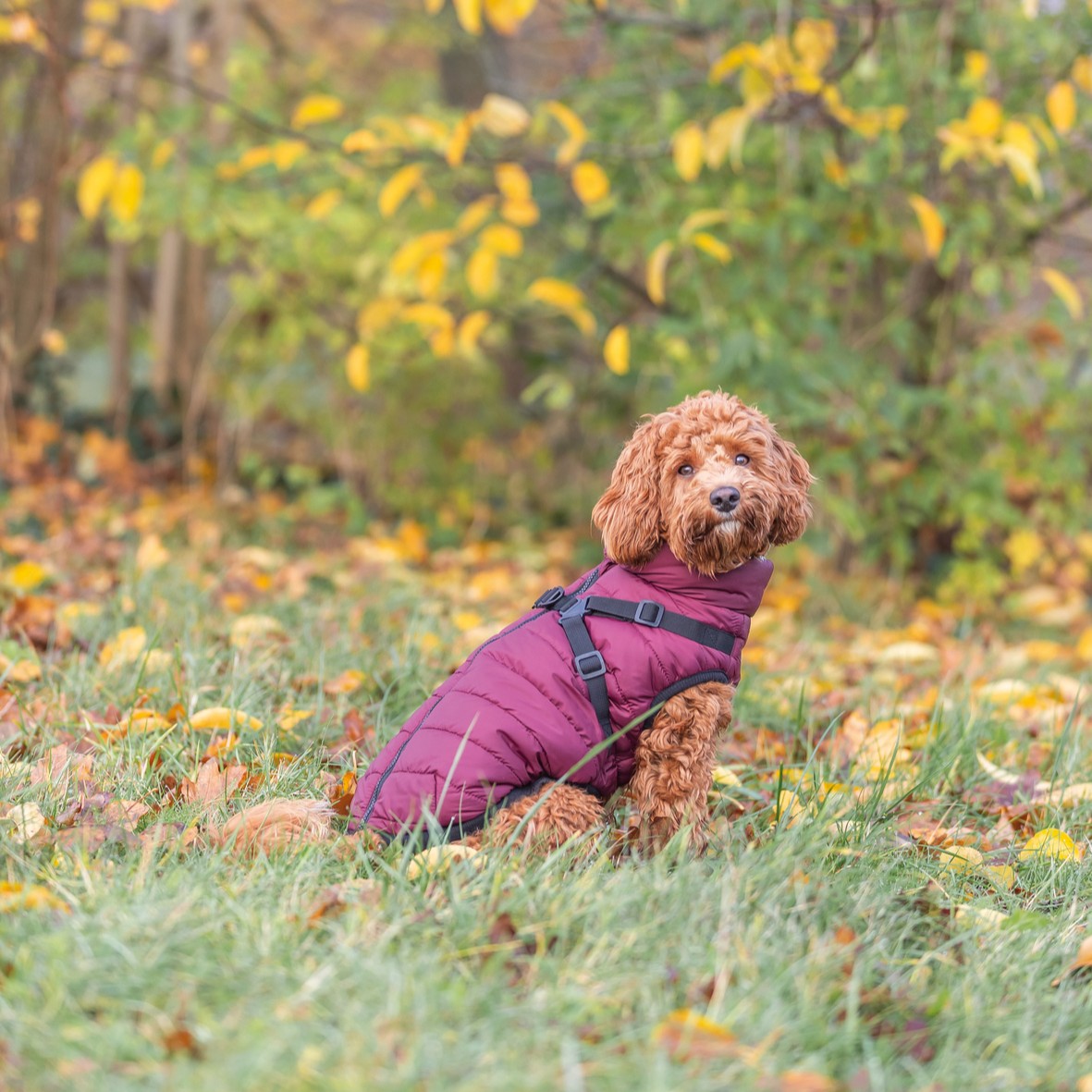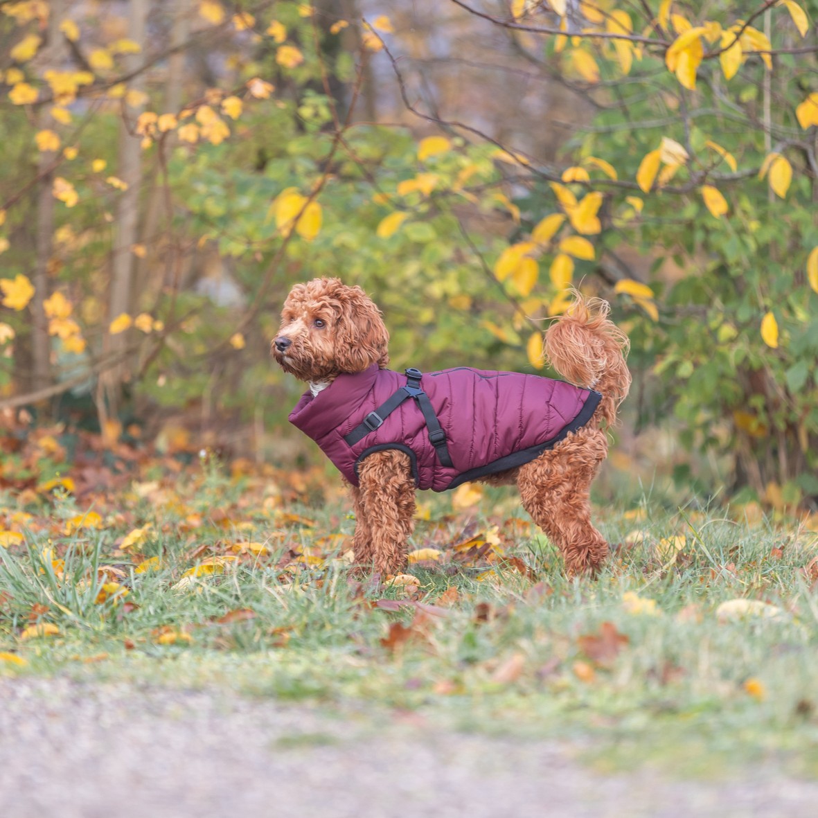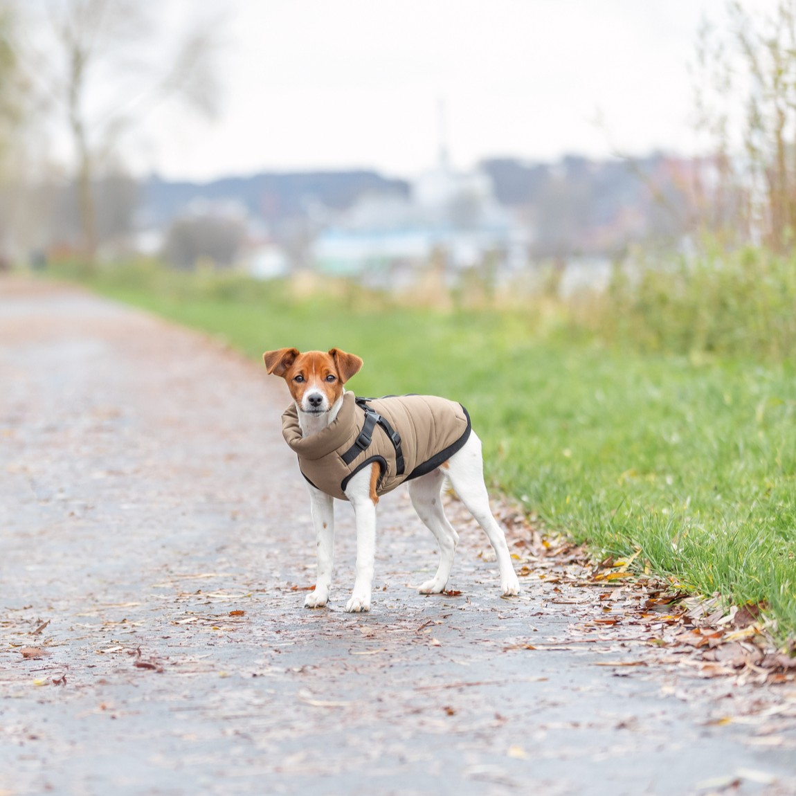 Trixie Pirou er en vinterjakke med integrert hundesele som gir varme og samtidig fungerer som festepunkt for line. Jakken kombinerer vær- og kuldevern med praktisk funksjonalitet for daglige turer.