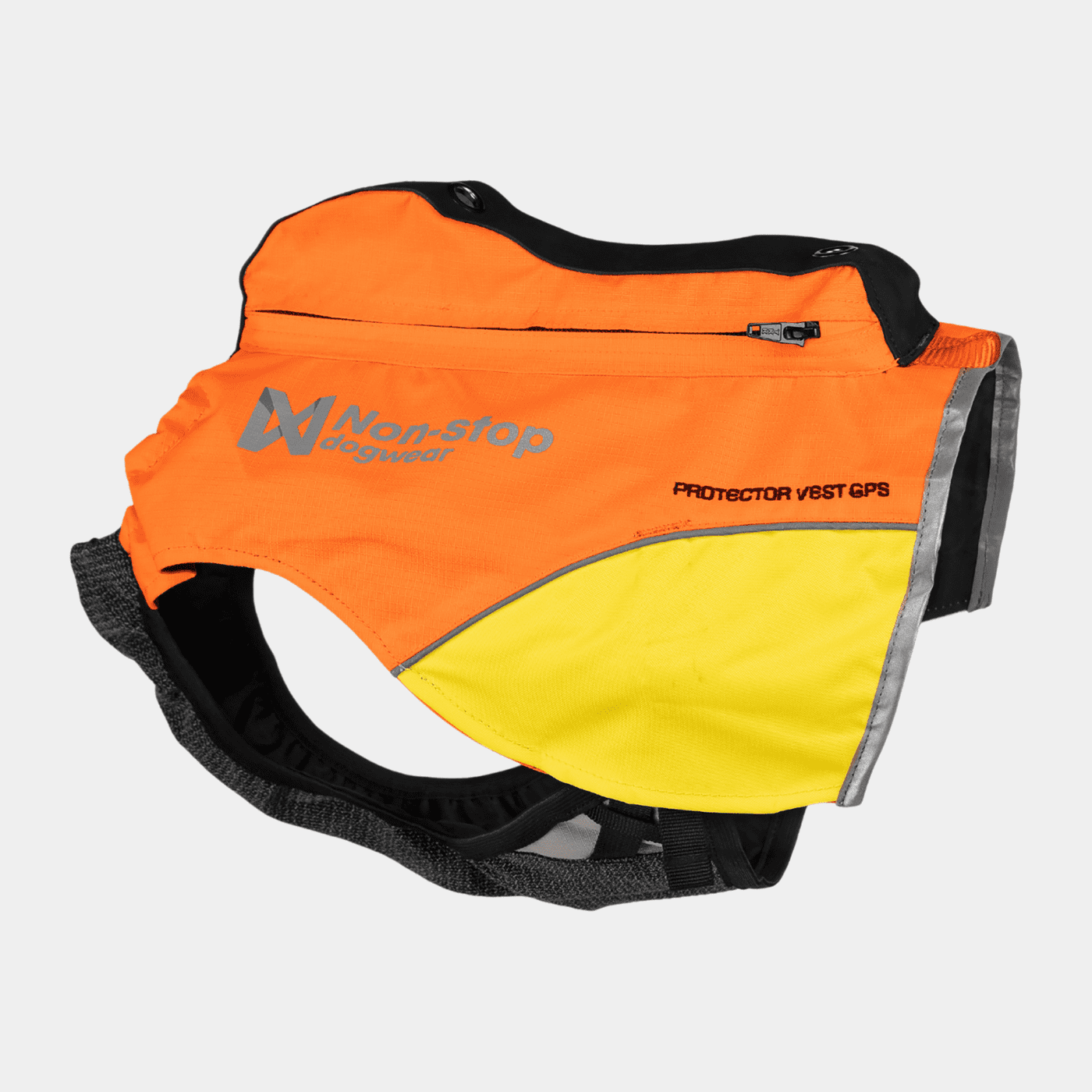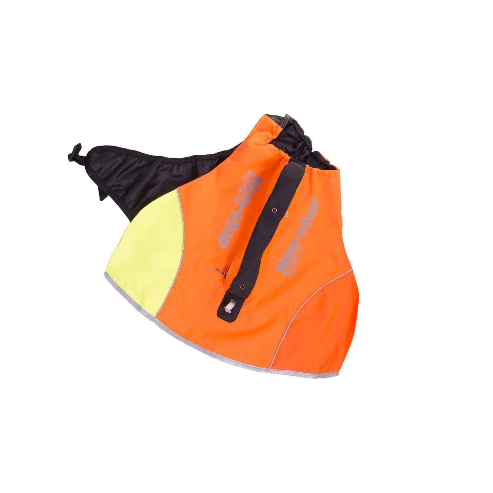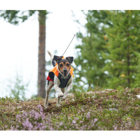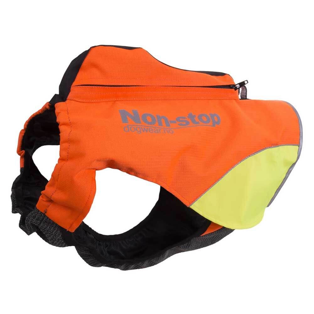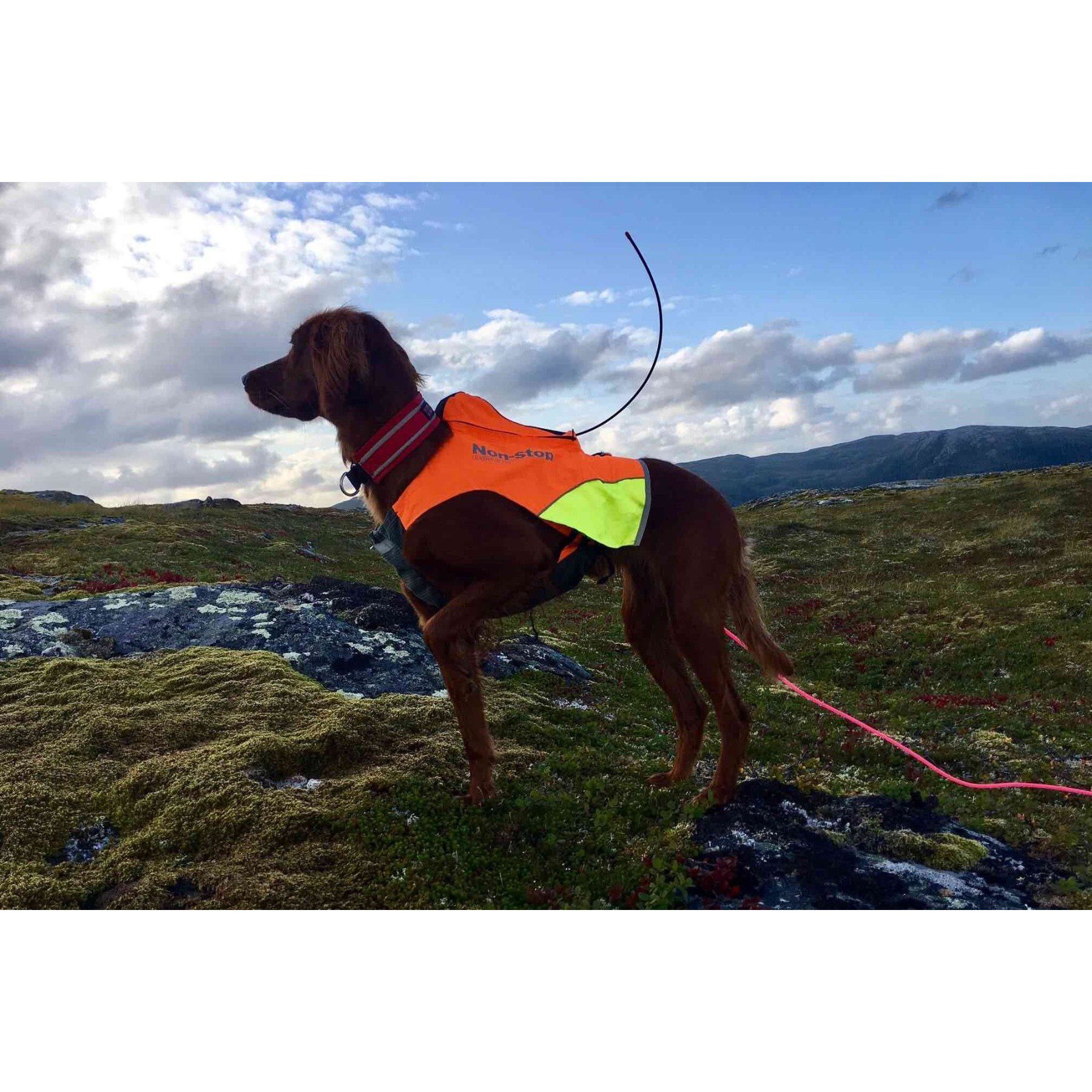 Non-Stop Dogwear Protector Vest GPS er en solid jaktvest med integrert lomme for GPS eller radiosender. Markeringsdekkenet er forsterket med aramidfiber for å beskytte hundens bryst mot skarpe kvister og steiner. Et innovativt og slitesterkt jaktdekken med brystklaff i aramidfiber og kraftig ripstop ytterstoff. Protector vest GPS har egen lomme for GPS og radiosender. Markeringsdekkenet har fargede felter på sidene som viser hvilken retning hunden står på lang avstand. Den kraftige oransje fargen, reflekstrykk og striper i 3M refleks gjør hunden godt synlig i terrenget. På ryggen er det en løkke for feste av sporline. Nederst har dekkenet spiler som sørger for at det holder fasongen.