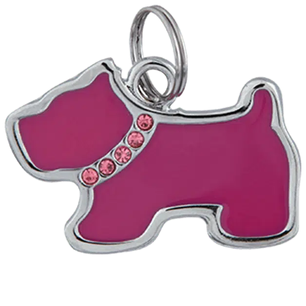 Hundesmykke ID-brikke i metall som kan henges på halsbånd eller sele.