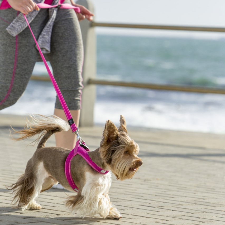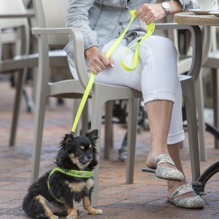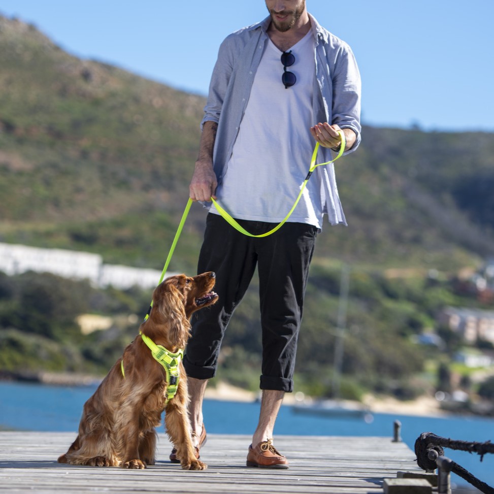 For en optimal brukeropplevelse, fest kobbelet til hundens sele eller halsbånd før turen. Sørg for at du har godt grep om håndtaket, spesielt i situasjoner med mye aktivitet.