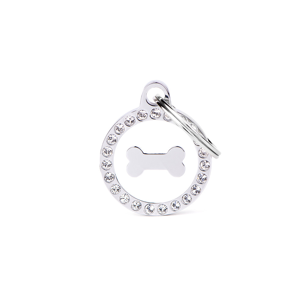 Sirkelmerket i Strass med bein på 21×26 mm passer til både katt, små og store hunder