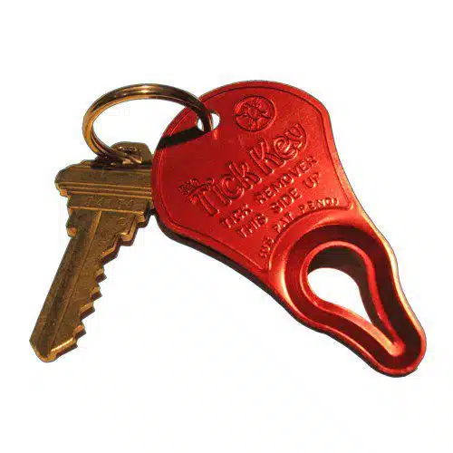 Å fjerne flåtten riktig og tidlig forhindrer flåttbårne sykdommer. Tick Key er verdens lettest å bruke flåttfjerner. Den flate formen gjør den enkel å oppbevare og bære. Ha en på nøkkelringen, hundehalsbåndet eller båndet, i lommeboken, verktøykassen… hvor som helst! Å fjerne flåtten riktig og tidlig forhindrer flåttbårne sykdommer. Tick Key er laget av kraftig anodisert aluminium. Den er slitesterk og lett å holde ren med alkohol.