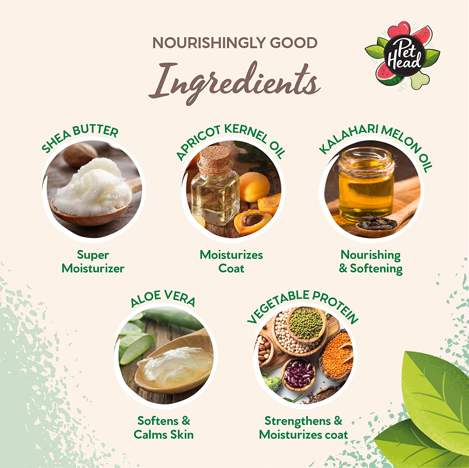 Alle Pet Head -produktene er uten parabener som er overflateaktive stoffer eller fargestoffer. Gluten og nøtte-fri for sikkerhet. Vi er transparente, alle våre ingredienser er fullstendig oppført i emballasjen. Pet Head er et stolt vegansk produkt.