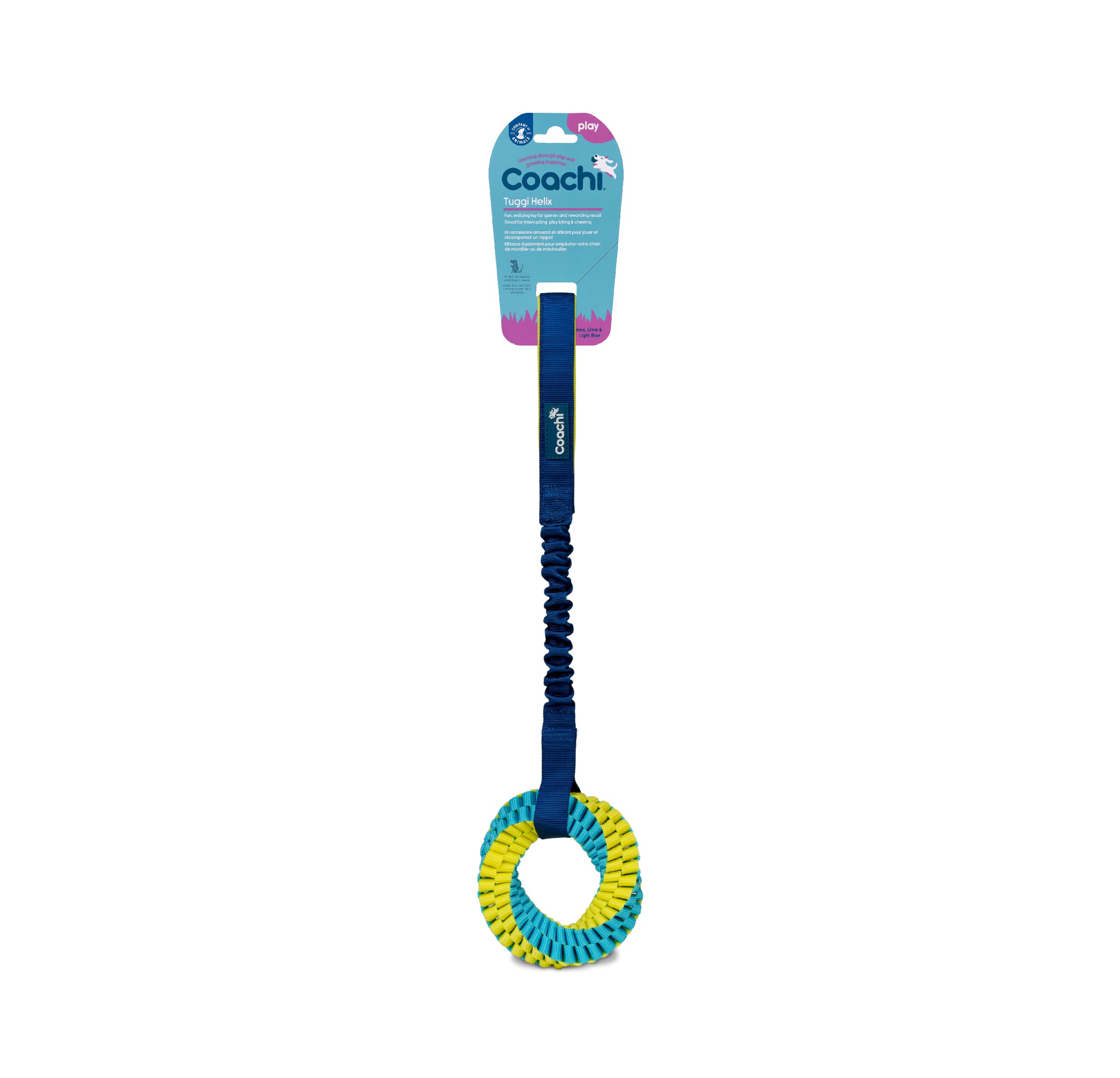 Coachi Tuggi Helix er et helt nytt innovativt design. Den er lett, utrolig sterk og har en supersterk strikk og mykt neoprenhåndtak som sikrer at lekene er skånsomme mot hundens nakke og armer.