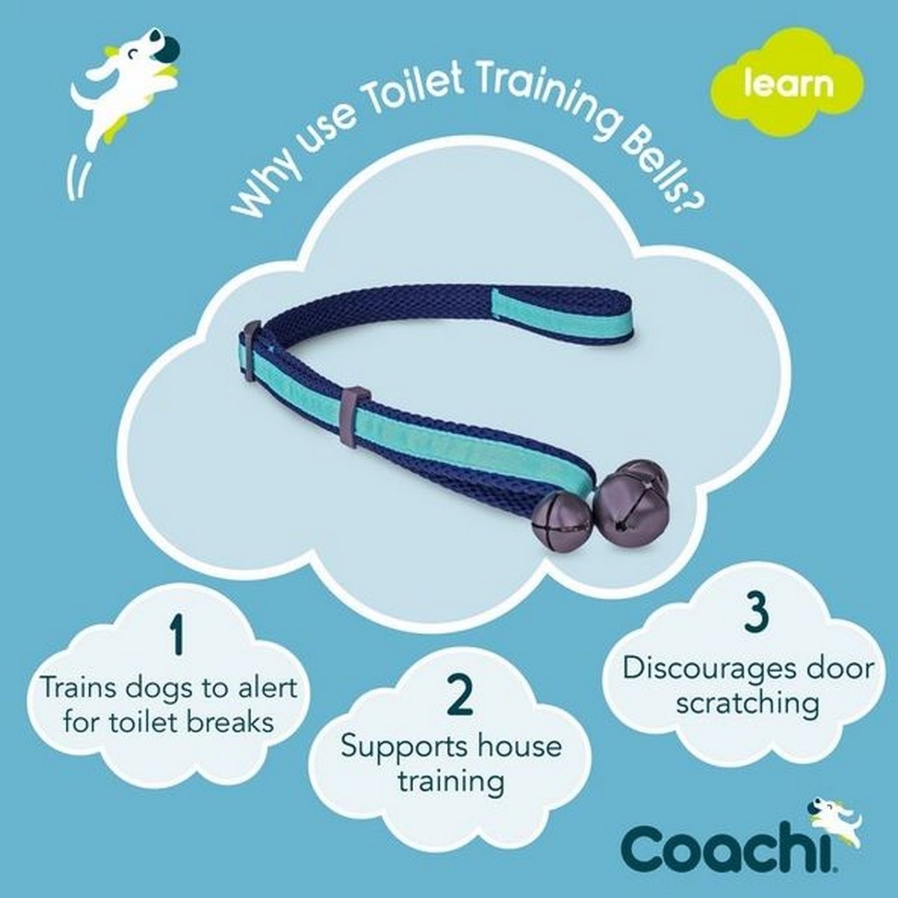 Coachi hundetoaletttreningsklokker hjelper til med å gjøre toaletttrening av valper enkelt. Bare tren valpen/hunden din til å kommunisere når den trenger å gå ut. Perfekt for alle valper og hunder.