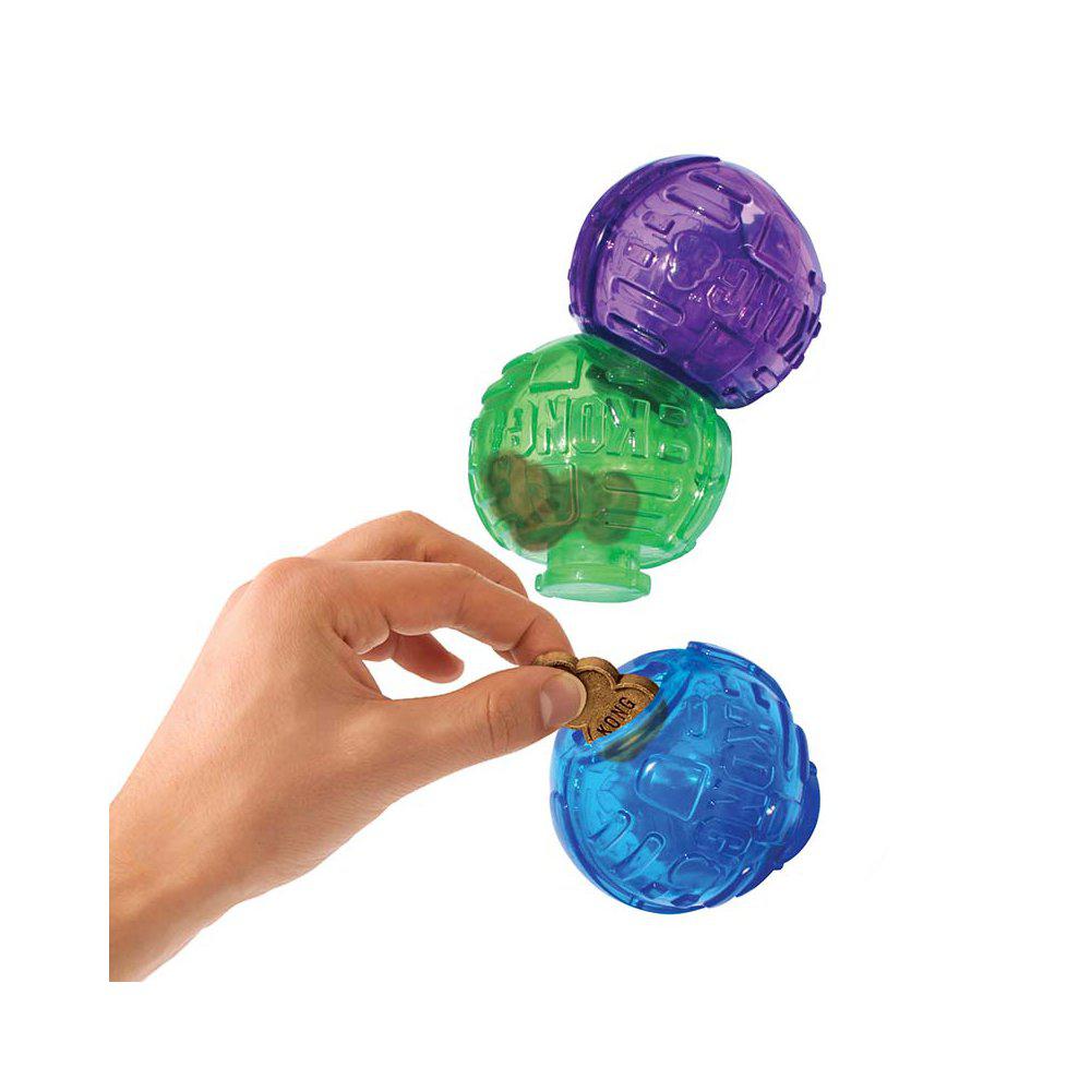 Fyll delene med tørrfôrkuler eller godbiter og lås dem sammen enkelt ved å vri. For økt utfordring kan du kjøpe flere pakker og sette sammen enda flere ledd.