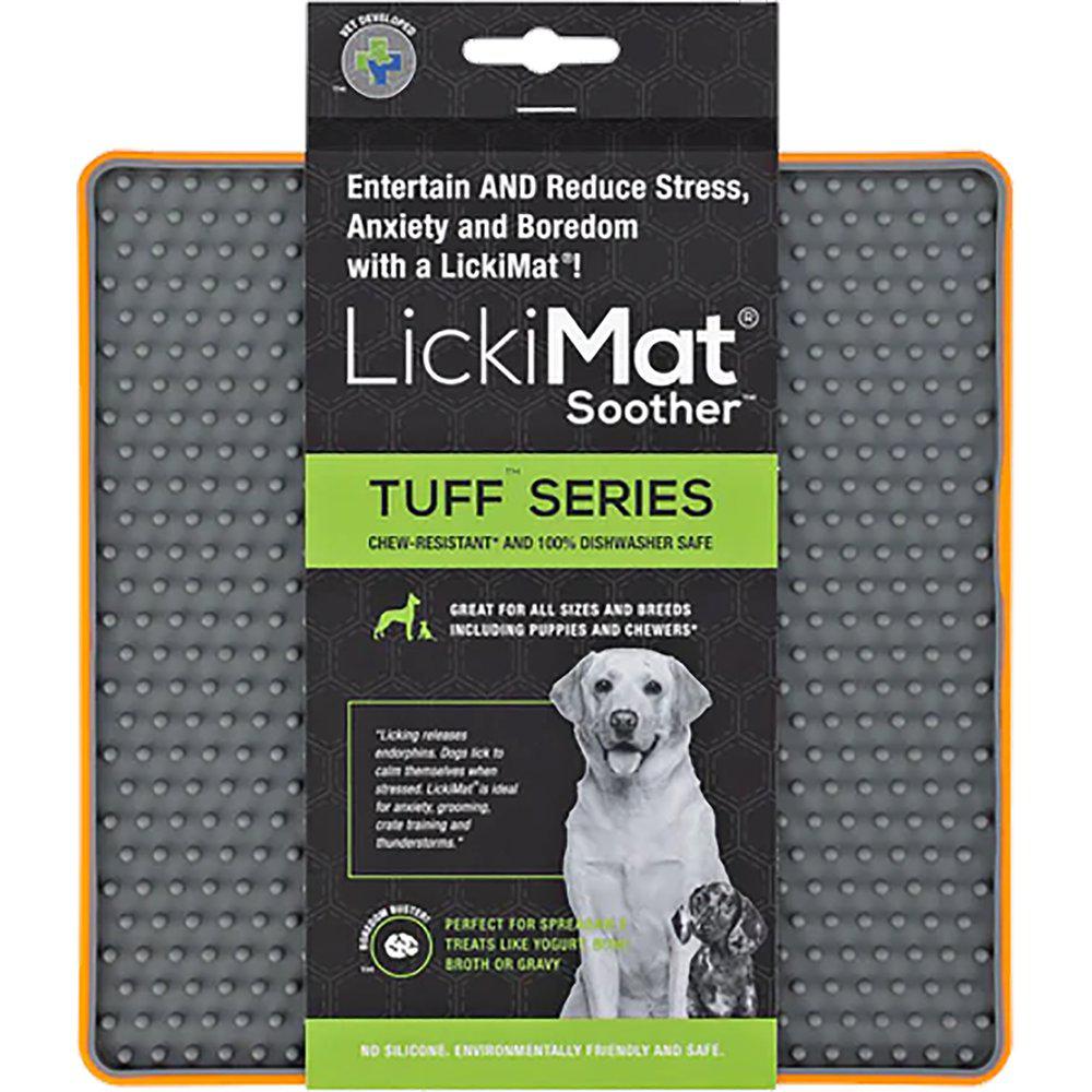 LickiMat Soother TUFF er en hardfør slikkematte som passer både til hund og katt. TUFF-serien er laget med tanke på hunder som tygger i stykker det meste og er derfor hakket mer hardfør enn de klassiske LickiMat-slikkemattene. Slikkematter er kjekke å bruke til blant annet våtfôr, vom og posteier.