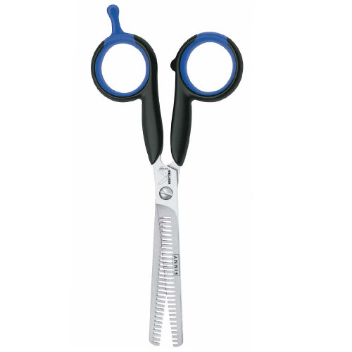 Finny Dobbel Effileringssaks er et kvalitetsverktøy på 17 cm, laget i robust rustfritt stål med en elegant matt finish. Med dobbel tagging (30 tenner) gir saksen en jevn og kontrollert tynning av pels, perfekt for profesjonelle resultater.