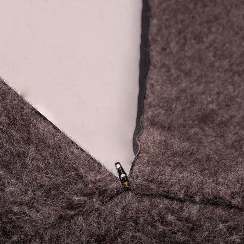 Den runde hundesengen har stive kanter som gir hunden mulighet til å hvile hodet på kanten – en naturlig sovepositur mange hunder foretrekker. Kantene består av skumgummirør (“pølser”) som er kledd i 100% merinoull og kan enkelt tas ut ved vask via glidelåsen rundt hele ytterkanten.