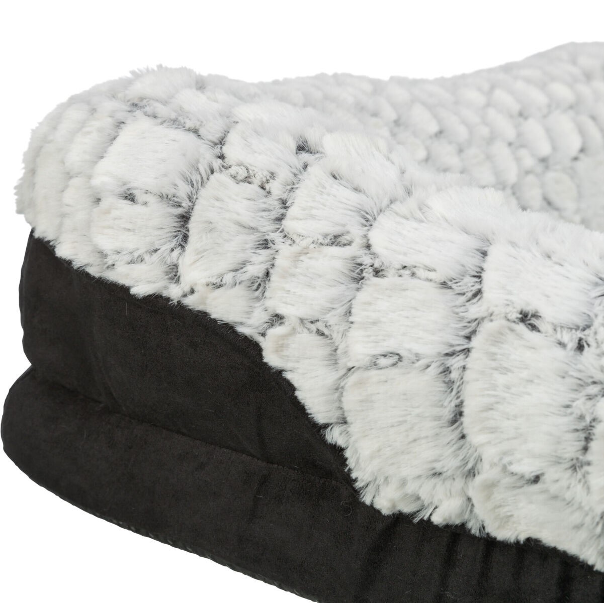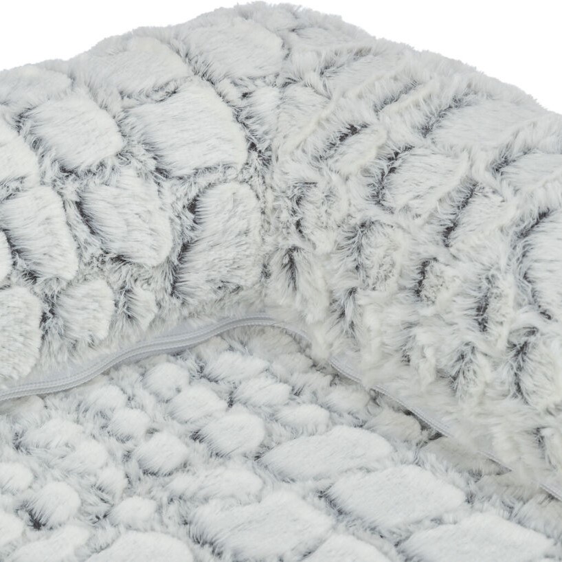 Hundesengen er dekket av et stilfullt og mykt velourstoff med strukturert plysj, som gjør sengen både elegant og utrolig behagelig for hunden å ligge på. Trekket er laget av slitesterk polyester, noe som sikrer lang holdbarhet og enkel vedlikehold. -