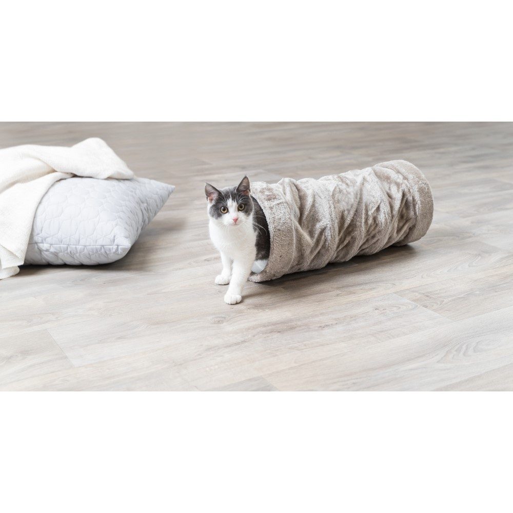 Denne plysjtunnelen kombinerer aktivitet og komfort i ett produkt. Den oppmuntrer katten til bevegelse og lek, samtidig som den tilbyr et koselig sted å trekke seg tilbake. Perfekt for innendørs bruk i hjem med én eller flere katter.