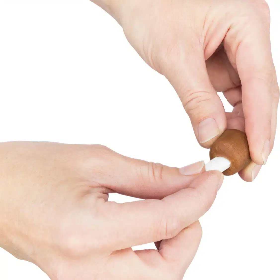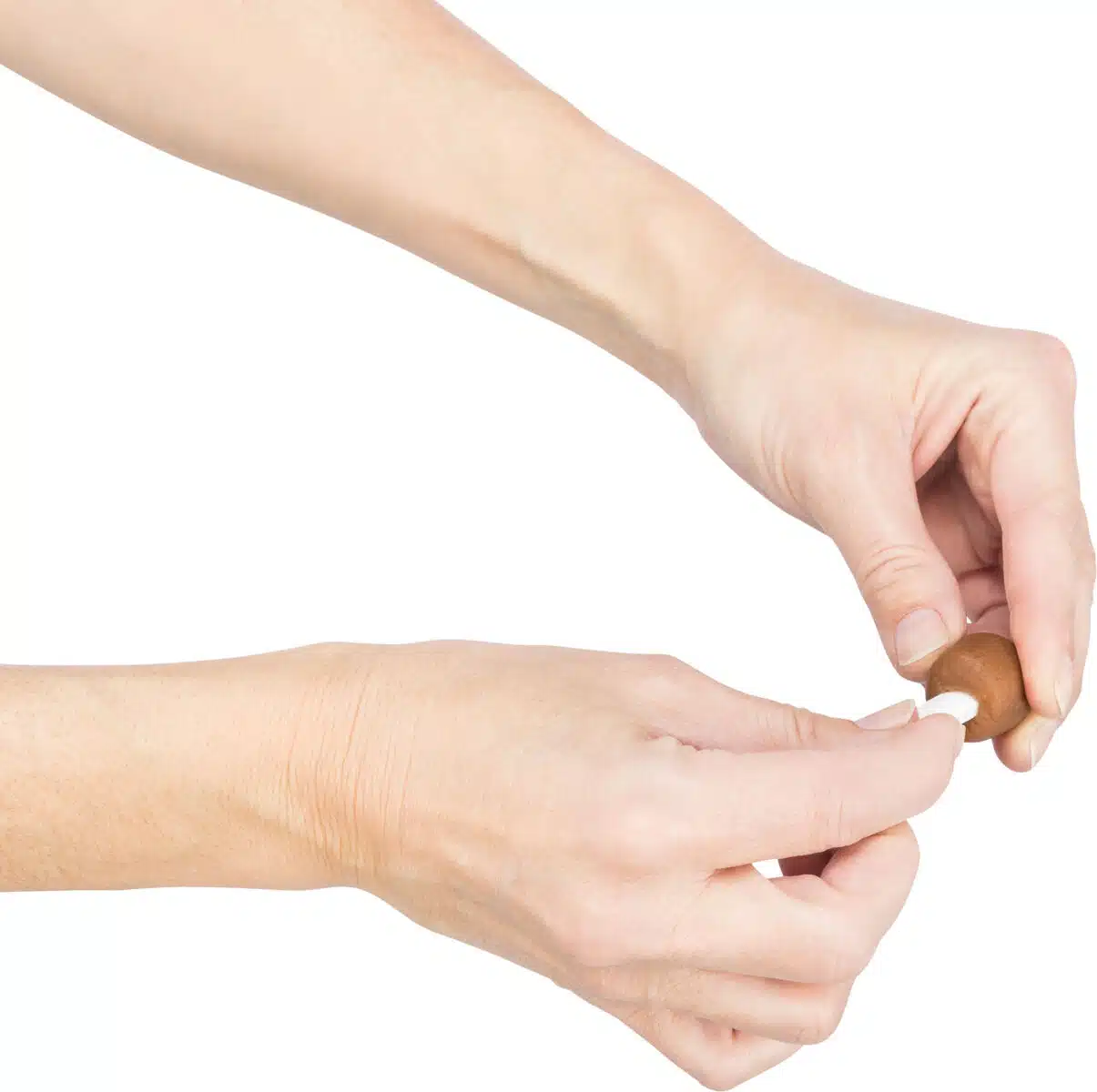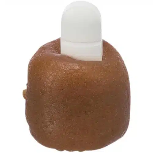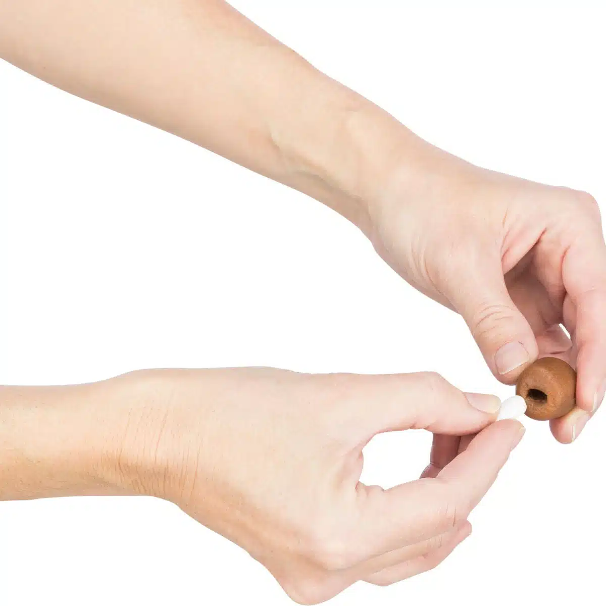 1. Trykk tabletten inn i åpningen – Åpningen i godbiten gjør det enkelt å plassere medisinen.
