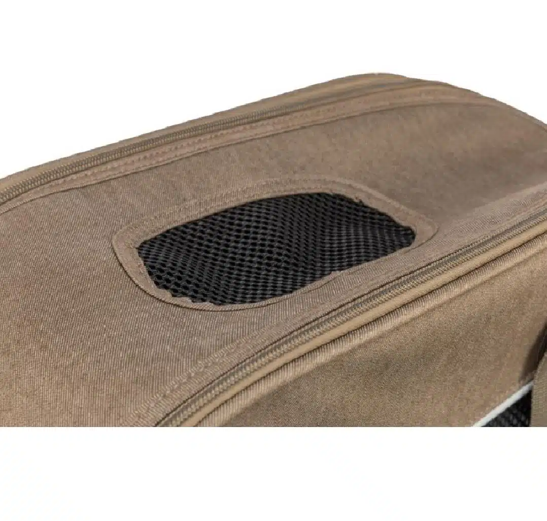 Vesken bæres enten med håndtak eller den justerbare skulderstroppen. Netting i veggene sørger for god luft, og at hunden kan kikke ut mens dere er på reise. Bruksområdet for slike reisevesker er transport på for eksempel buss eller når du er til fots.