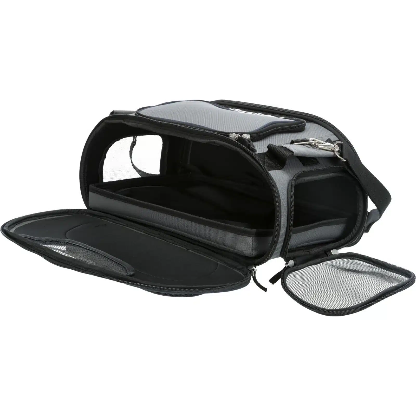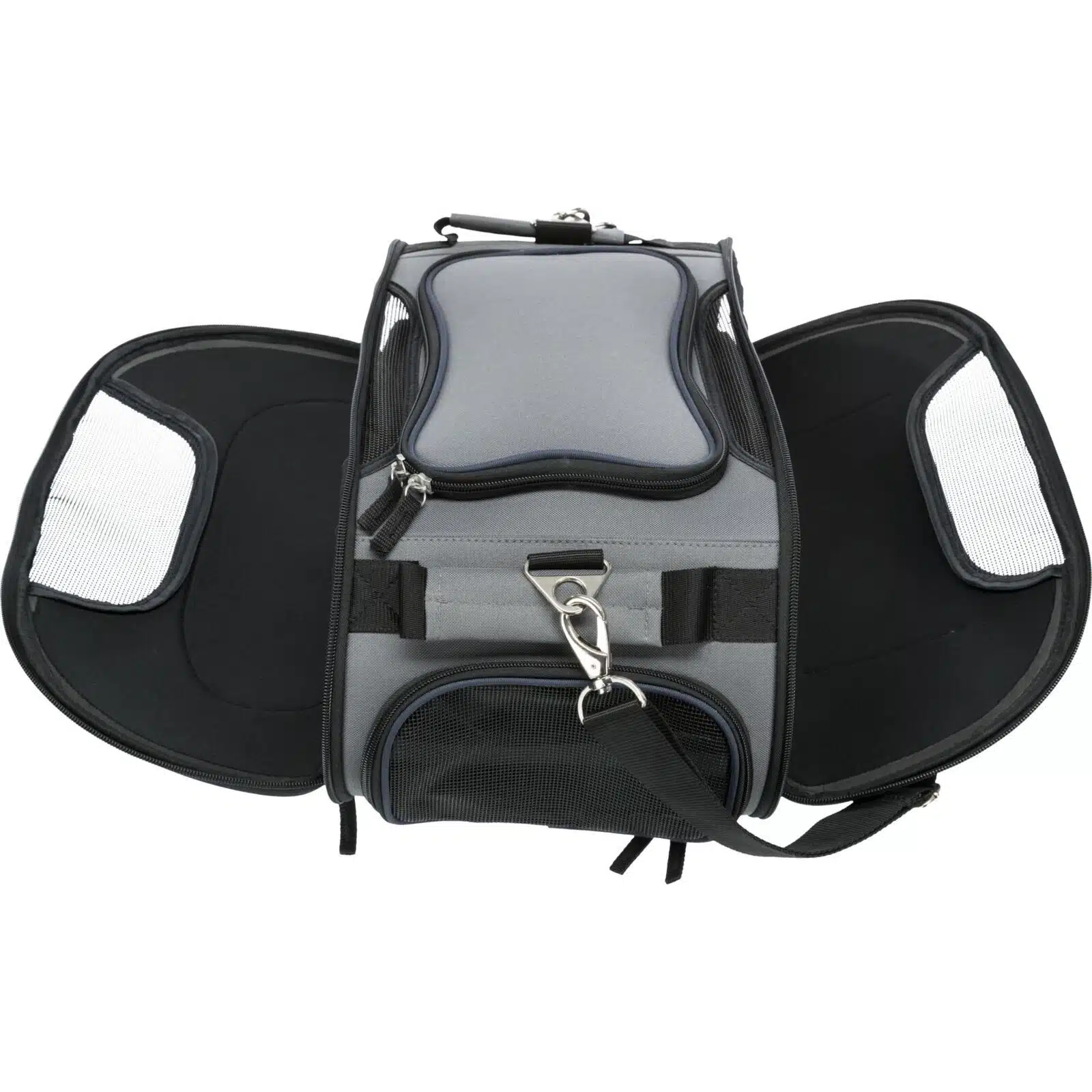 Polstret og vanntett bunnplate: Bunnplaten er både polstret og vanntett, noe som sikrer maksimal komfort for kjæledyret under transport. Den er også avtagbar, noe som gjør rengjøring enkel og praktisk etter reisen.