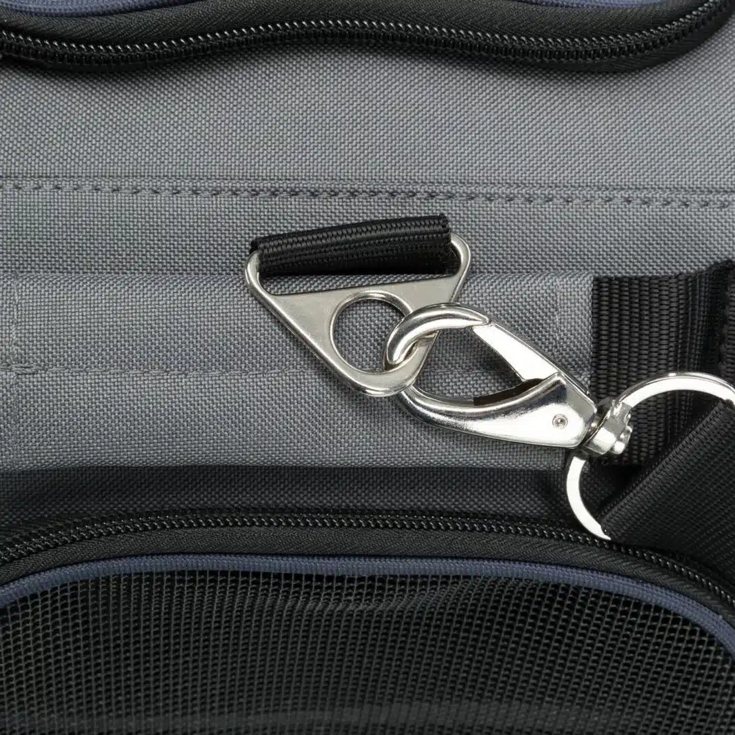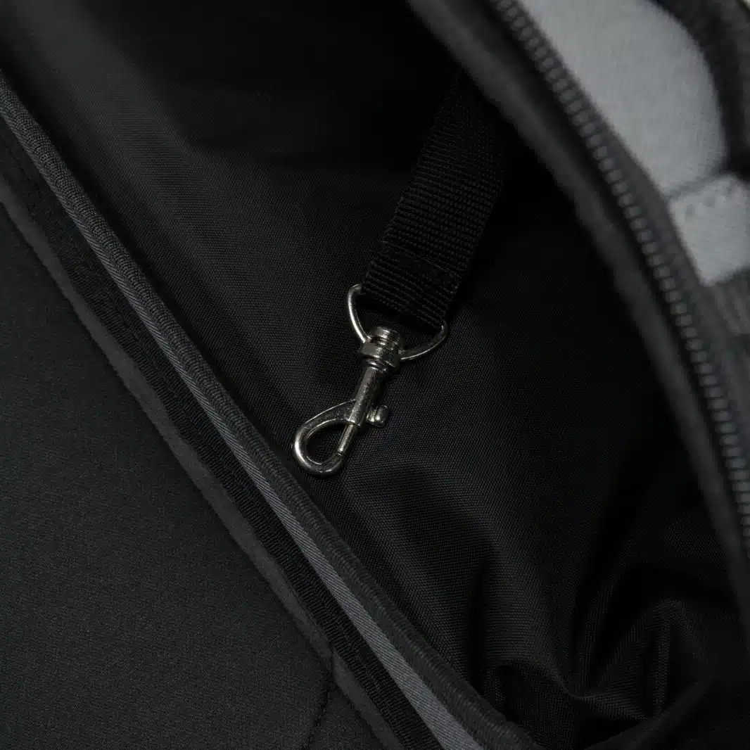 Innvendige sikkerhetsfunksjoner: Vesken er utstyrt med en integrert kort bånd som sikrer at kjæledyret ikke kan hoppe ut eller bevege seg uventet. Denne funksjonen er spesielt viktig i ukjente omgivelser som flykabiner, hvor dyr kan bli stresset.