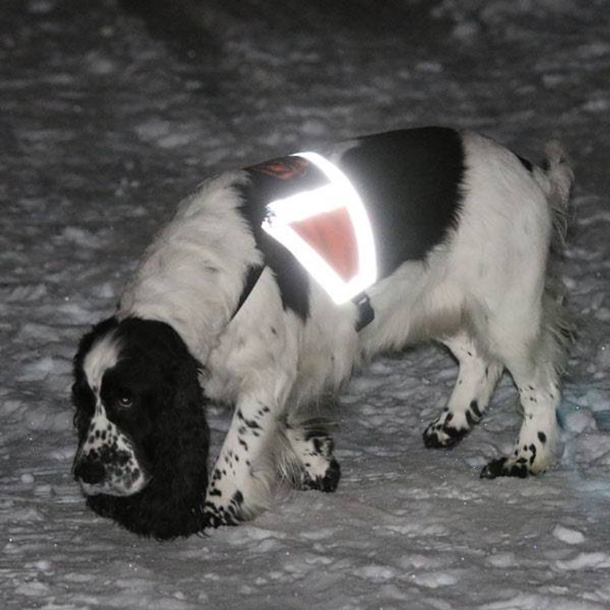 Dette smarte refleksdekkenet / markeringsdekkenet fra Canelana sitter godt inntil hundens kropp, har rikelig med refleks, stor Canelana-logo på ryggen og har en passform for optimal bevegelsesfrihet.