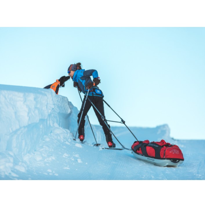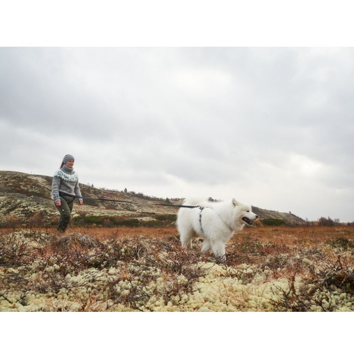 Pulk kan festes direkte i D-ringene på siden av beltet. Beltet har praktiske løkker hvor du kan feste kobbel, hundeposer og annet utstyr opp til 0,5 kilo. Trekkbeltet har en solid og sikker karabinkrok med skrulås for feste av hundens line. Kroken tåler en belastning på 300 kilo. Dersom det er viktig for deg å raskt kunne koble fra hunden, anbefaler vi å kjøpe Quick release snap hook med hurtigutløserfunksjon.