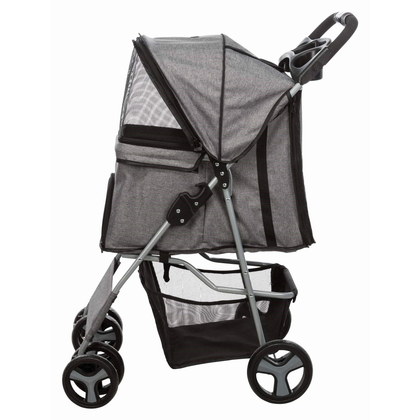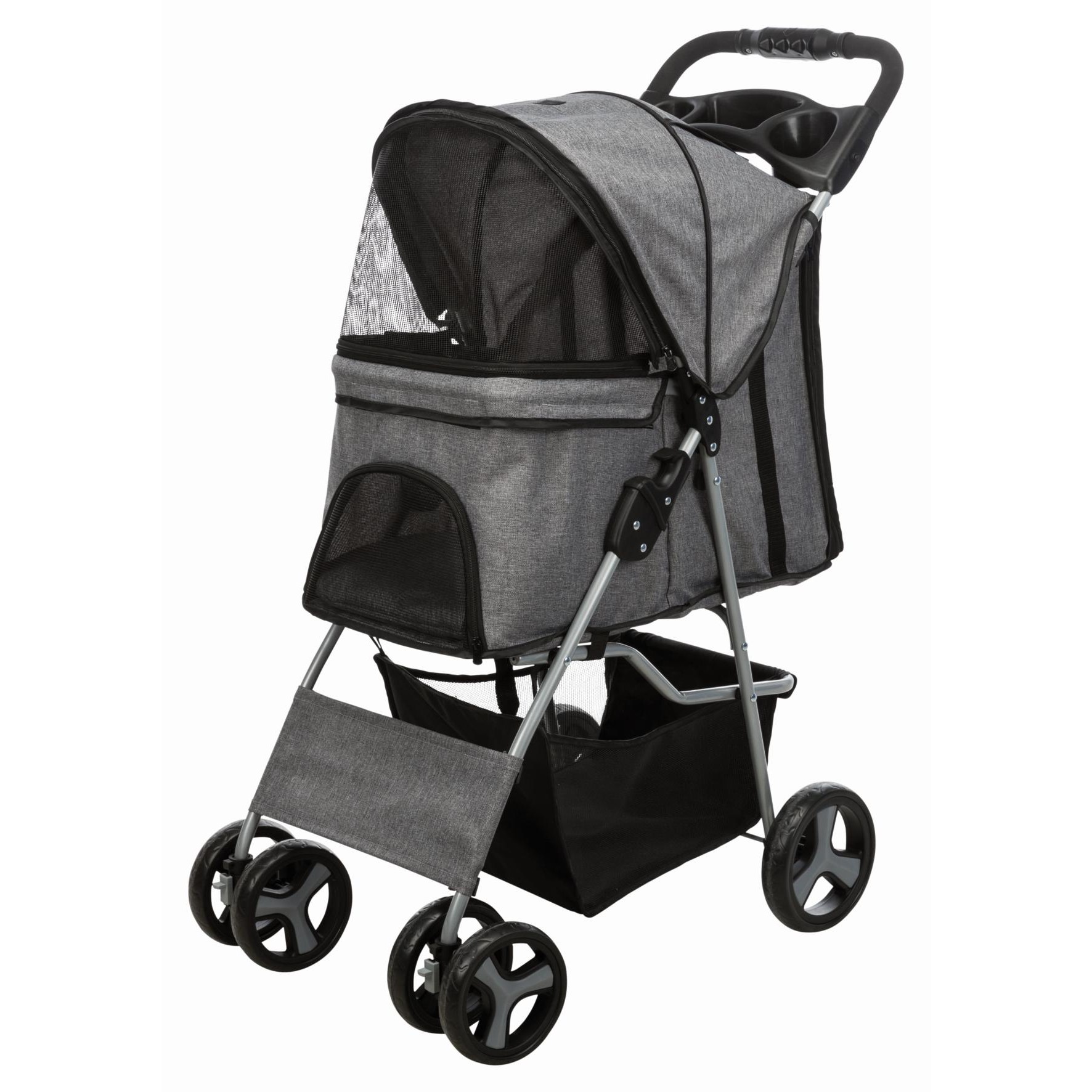 • Hvorfor bære når du kan trille? Dette er hundevognen du trenger. Rett og slett et veldig kult produkt for deg som alltid vil ha med hunden din, men ikke har mulighet til å bære den og den kan ikke gå så langt. Det kan være du har vond ryggen og hunden sliter med leddproblemer. En vogn løser dette. Her får hunden – eller katten – et trygt og rolig sted. Vognen kan lukkes helt tett, og har paneler med netting for god lufting. Når du skal ta kjæledyret ut eller inn i vognen, åpner du helt opp og får lett tilgang gjennom den store åpningen.Hjulene er laget for å trille jevnt uten motstand. To parkeringsbremser sørger for sikkerhet. Kjæledyret festes med to bånd på innsiden for å sikre det. Av praktiske ting kan vi nevne polstret håndtak, koppholder og lagringskurv under. Du slår vognen enkelt sammen. Enhåndsfunksjon loves, så dette blir enkelt og greit. Vi syns dette er et spennende produkt som absolutt har en målgruppe. Litt utradisjonelt i Norge, men ikke la deg stoppe av dårlig rygg eller alderen og fysisk form på kjæledyret ditt. Gå på tur.