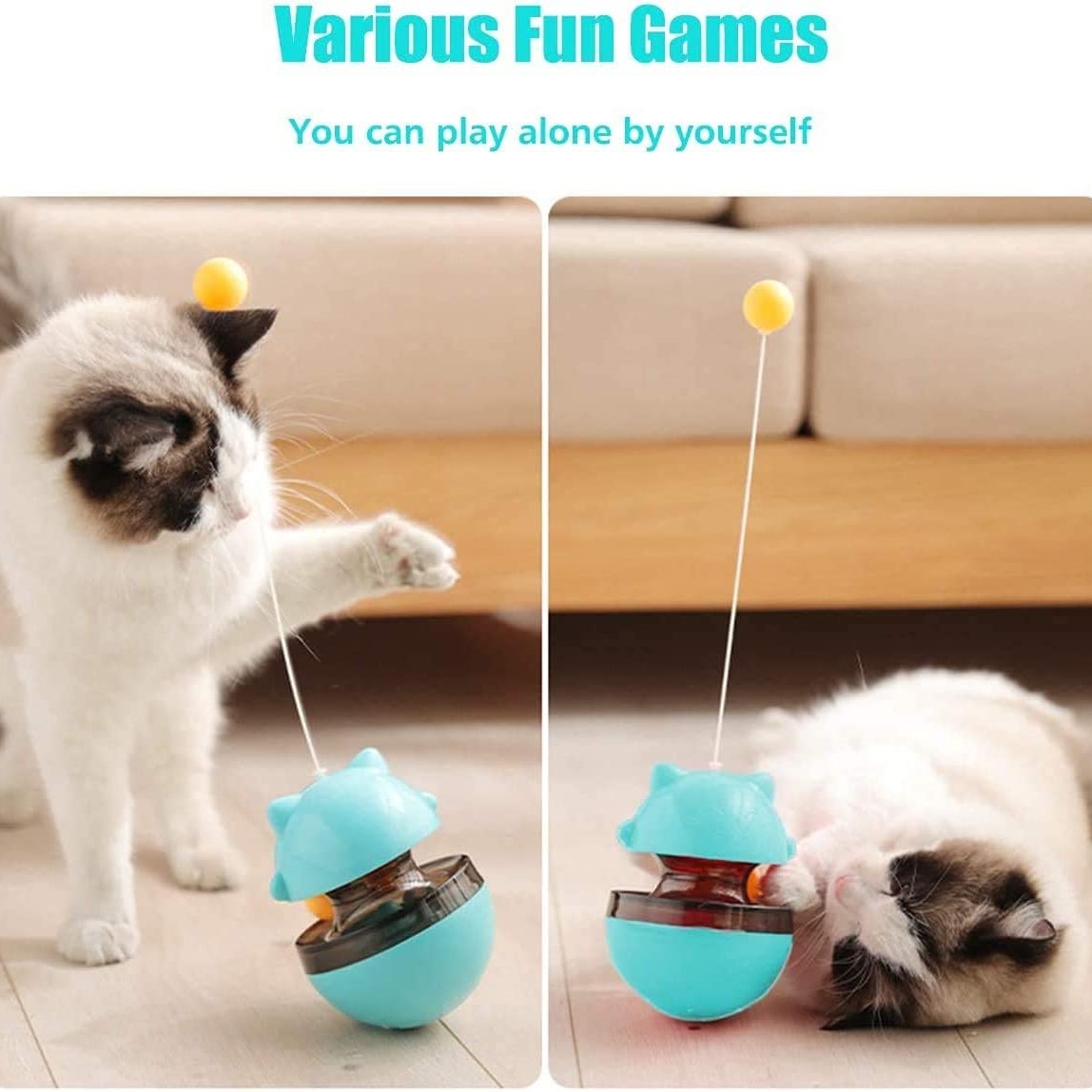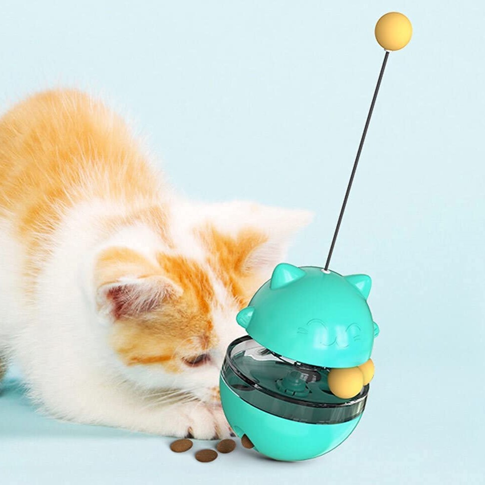 - Interactive Treat Dispensing Slow Feeder Toy har flere funksjoner, denne Funny Tumbler Style IQ Training Toy kan brukes som matdispenser og leketøy for katter.
