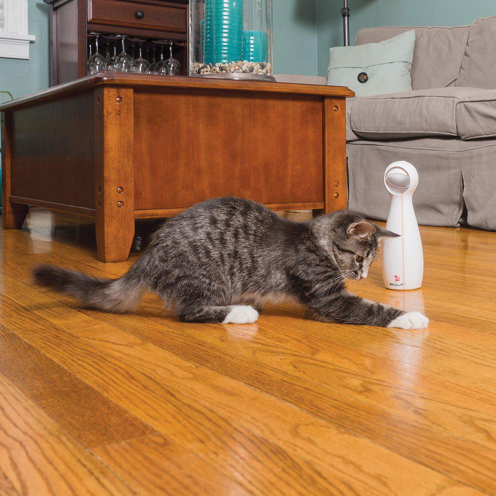 Bolt selv sender laserprikken rundt i et uregelmessig mønster. FroliCat BOLT er en interaktiv laser katteleke som holder katten opptatt når du vil være alene en stund, Bolt er litt morsommere enn en vanlig laserpeker.