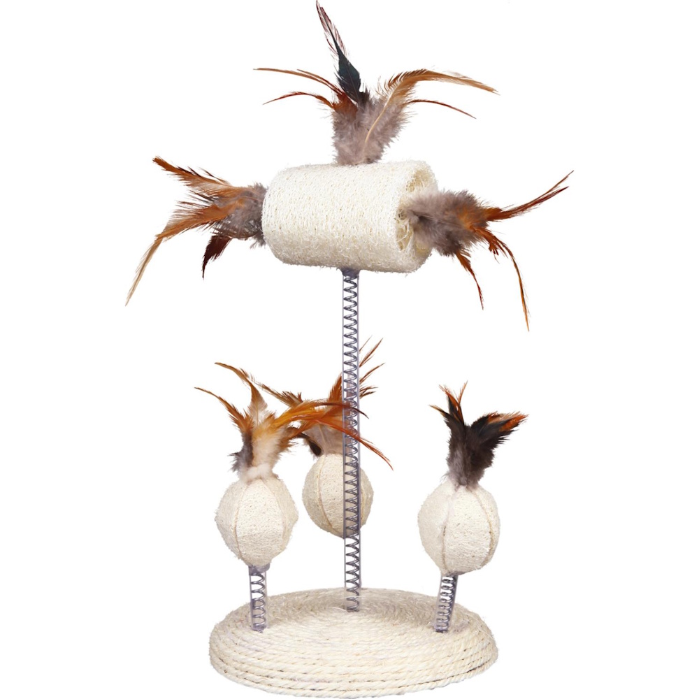 Trixie Fjærleke med fjær på sisalfot er en interaktiv katteleke som vekker kattens jaktinstinkter og gir mye aktivitet og moro. Fjærens lette bevegelser fanger kattens oppmerksomhet og stimulerer til jakt og lek, mens den robuste basen av sisal fungerer som et kloreområde for ekstra glede. Denne leken motiverer katten til å bevege seg, hoppe og jage, noe som fremmer både fysisk aktivitet og mental stimulering. Med sin naturlige utforming og holdbare materialer er den perfekt for å holde katten engasjert og fornøyd hjemme.