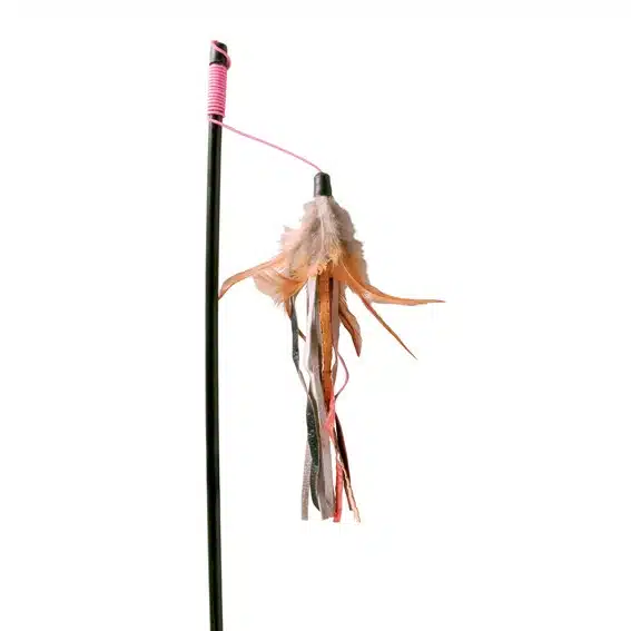 Vår viftepinne måler 50 cm og har et elastisk bånd som gir ekstra dynamikk til leken. Det skaper en spennende opplevelse både for katten og eieren. De hengende lærremser og fjær gir en realistisk bevegelse som virkelig fanger kattens interesse og oppmuntrer til aktiv lek.