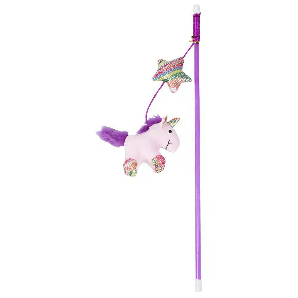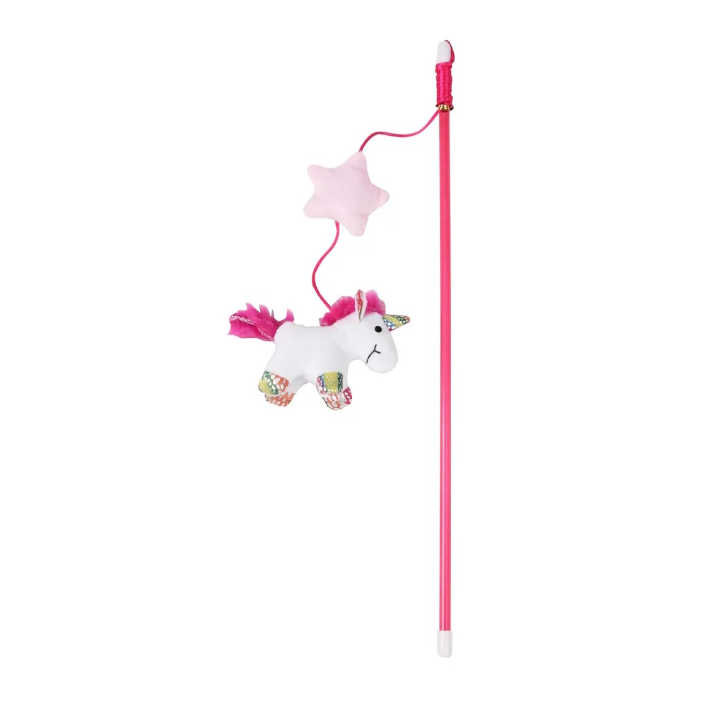 Plysj enhjørningen på enden av pinnen er fylt med deilige kattemynte, noe som gjør den ekstra attraktiv for katten din. Med en total lengde på 46 cm er den lett å håndtere og gir katten din et mål å jage etter.