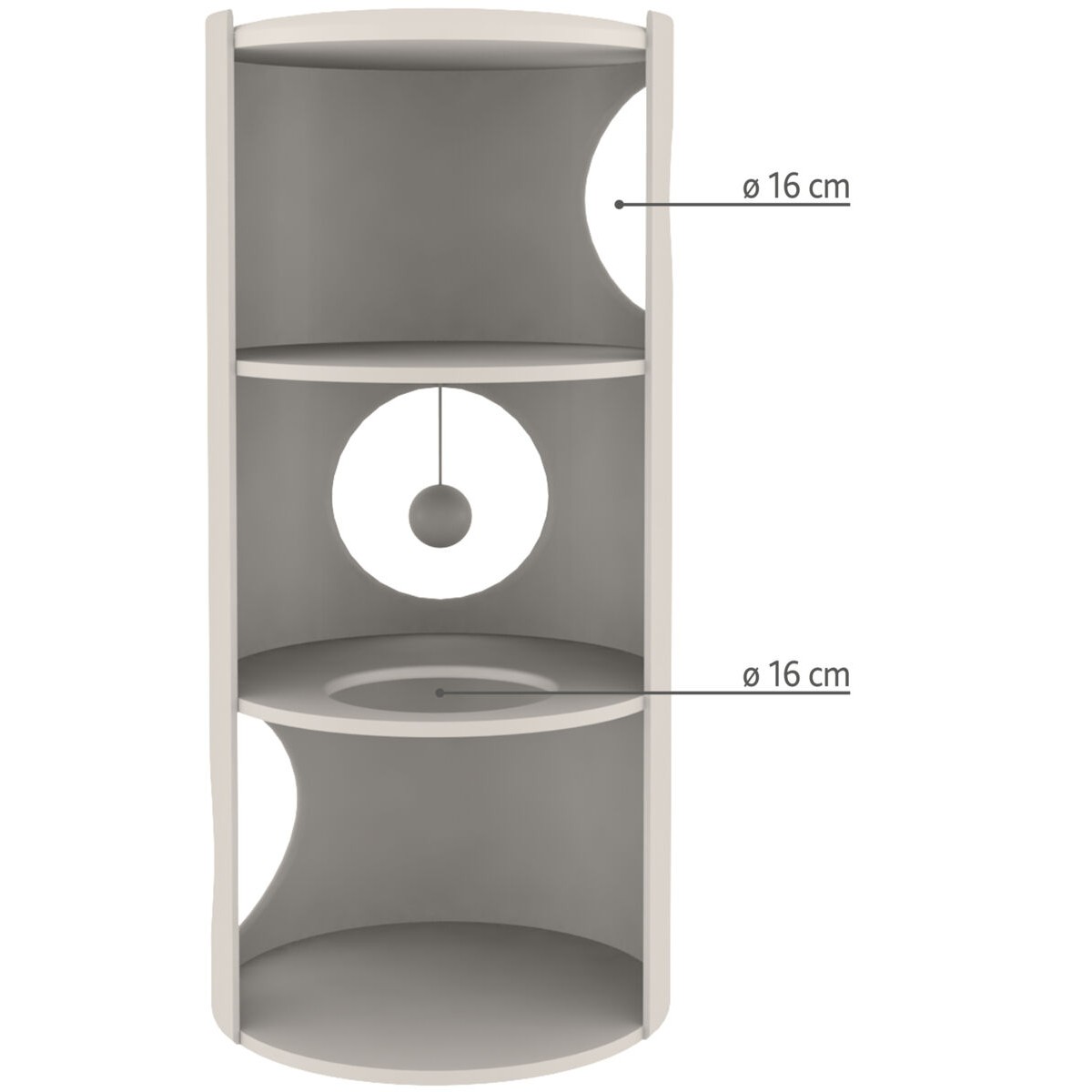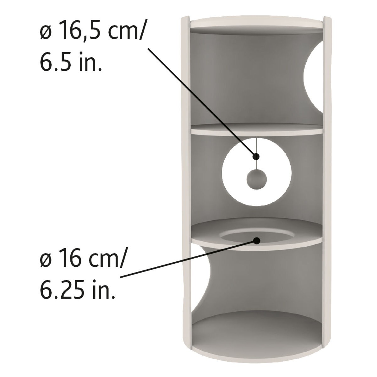 Med høyden på 70 cm og diameteren på ca. 37 cm er Samuel Cat Tower høy nok til at katten får oversikt over rommet og kan strekke seg, men ikke så stor at den tar opp hele rommet.